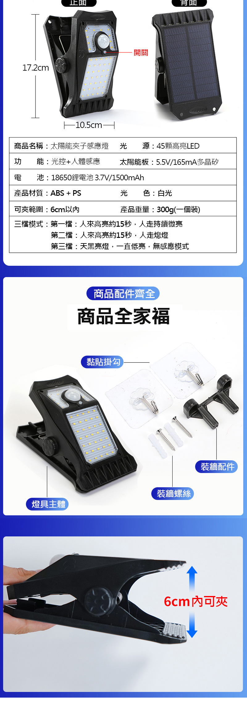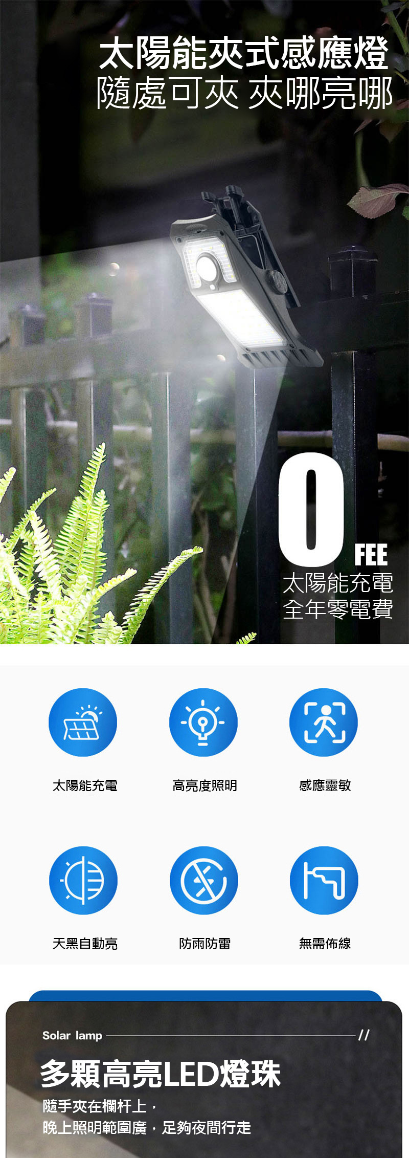品名:太陽能夾子感應燈