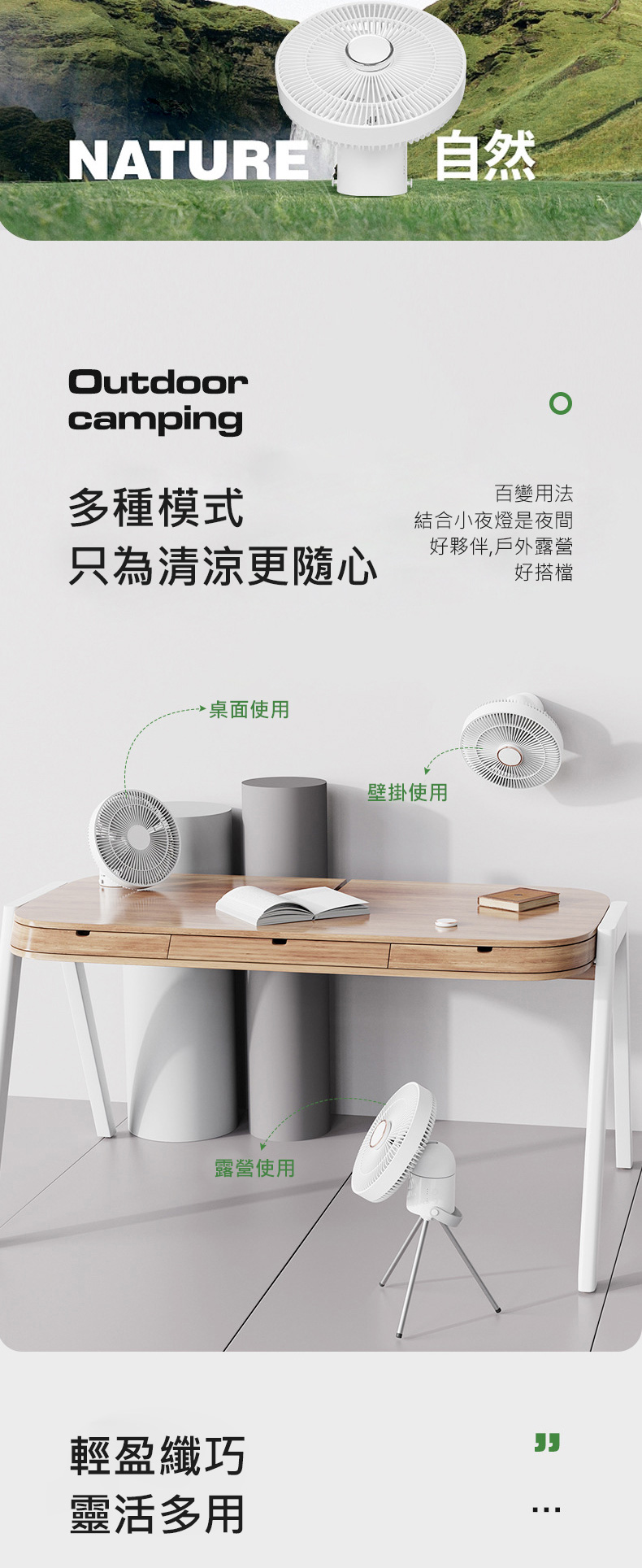 ◆多種使用模式,桌擺/吊掛/壁掛/腳架等方式,居家戶外都適用