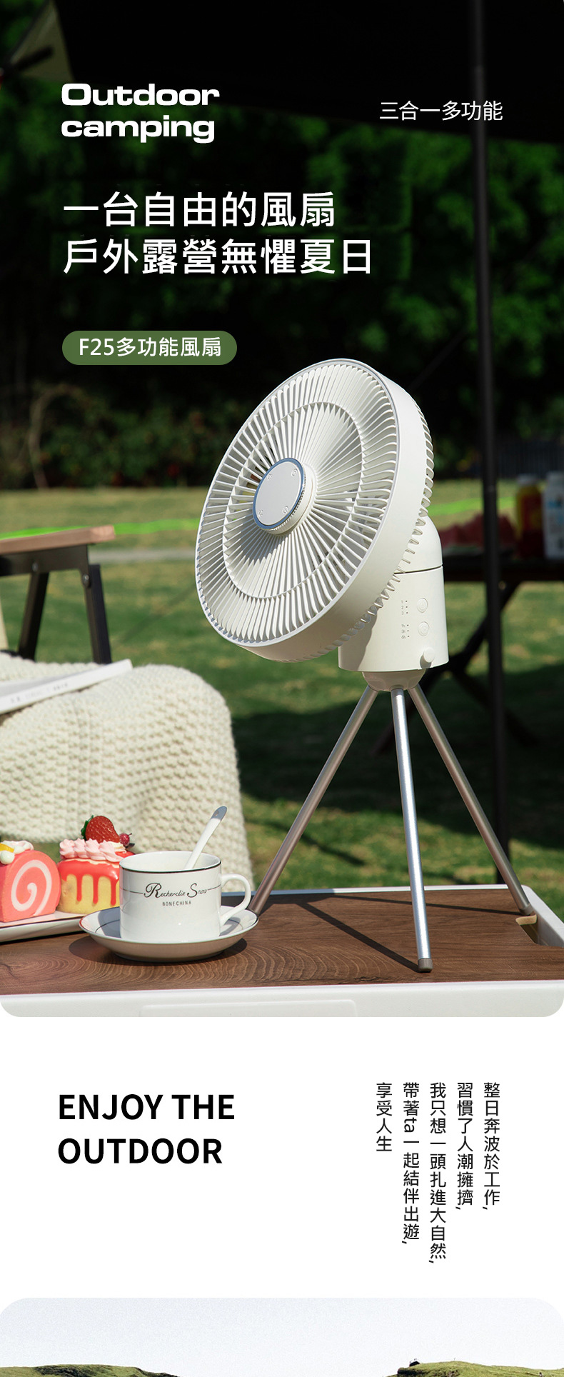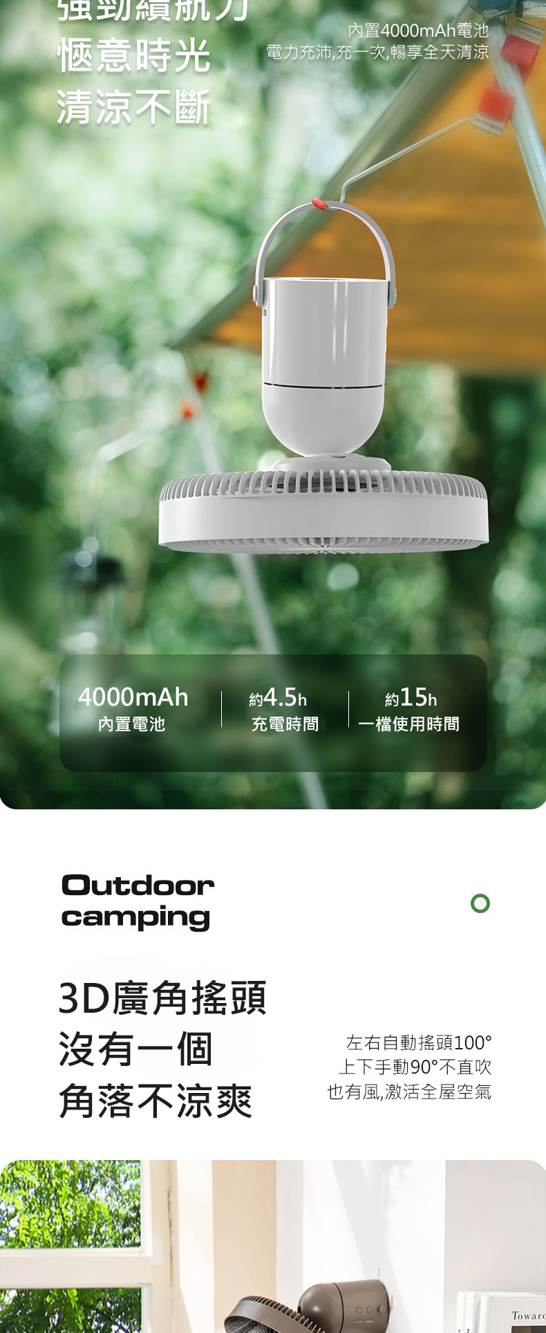 多功能風扇 桌面風扇/壁掛風扇/露營風扇 循環扇 遙控 擺頭 小夜燈 附腳架 停電必備 (4000mAh)