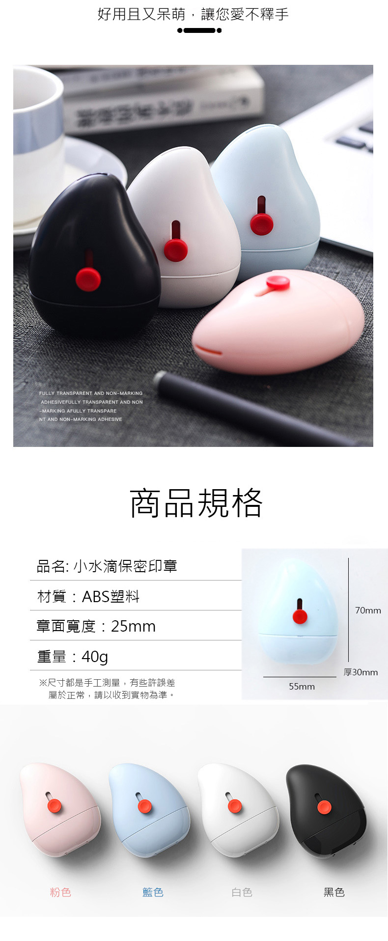 品名: 小水滴 滾輪保密印章