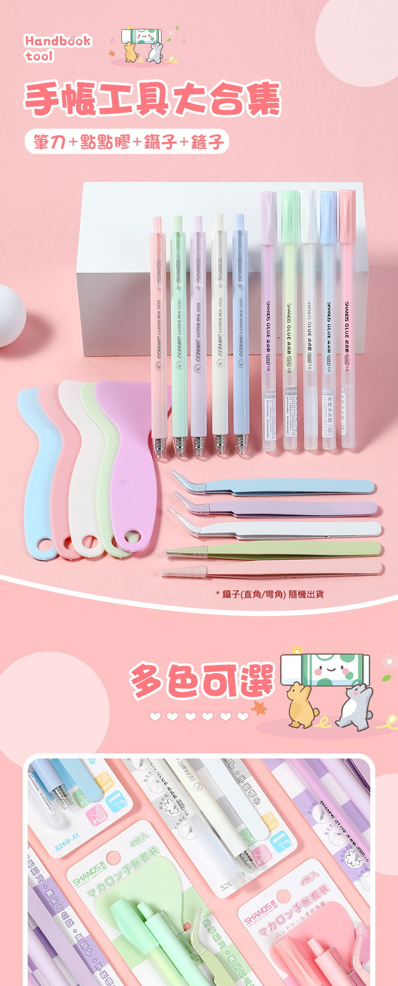 手帳神器 手帳工具套裝4件組 點點膠筆+安全陶瓷筆刀+鑷子+鏟子 DIY製作工具 學生兒童DIY 裝飾素材具(善知4件組)