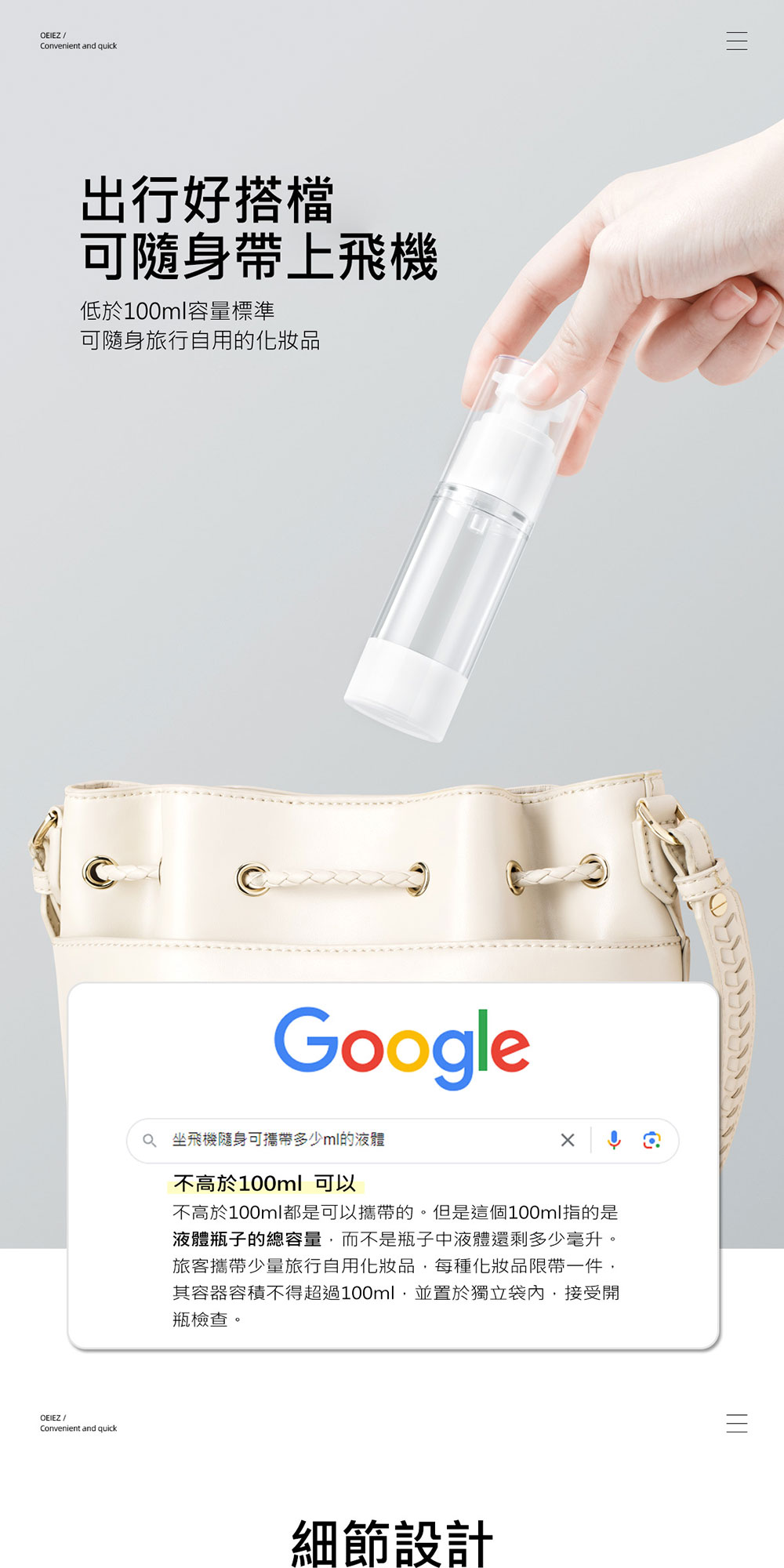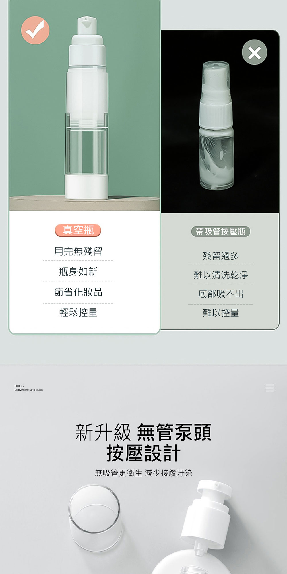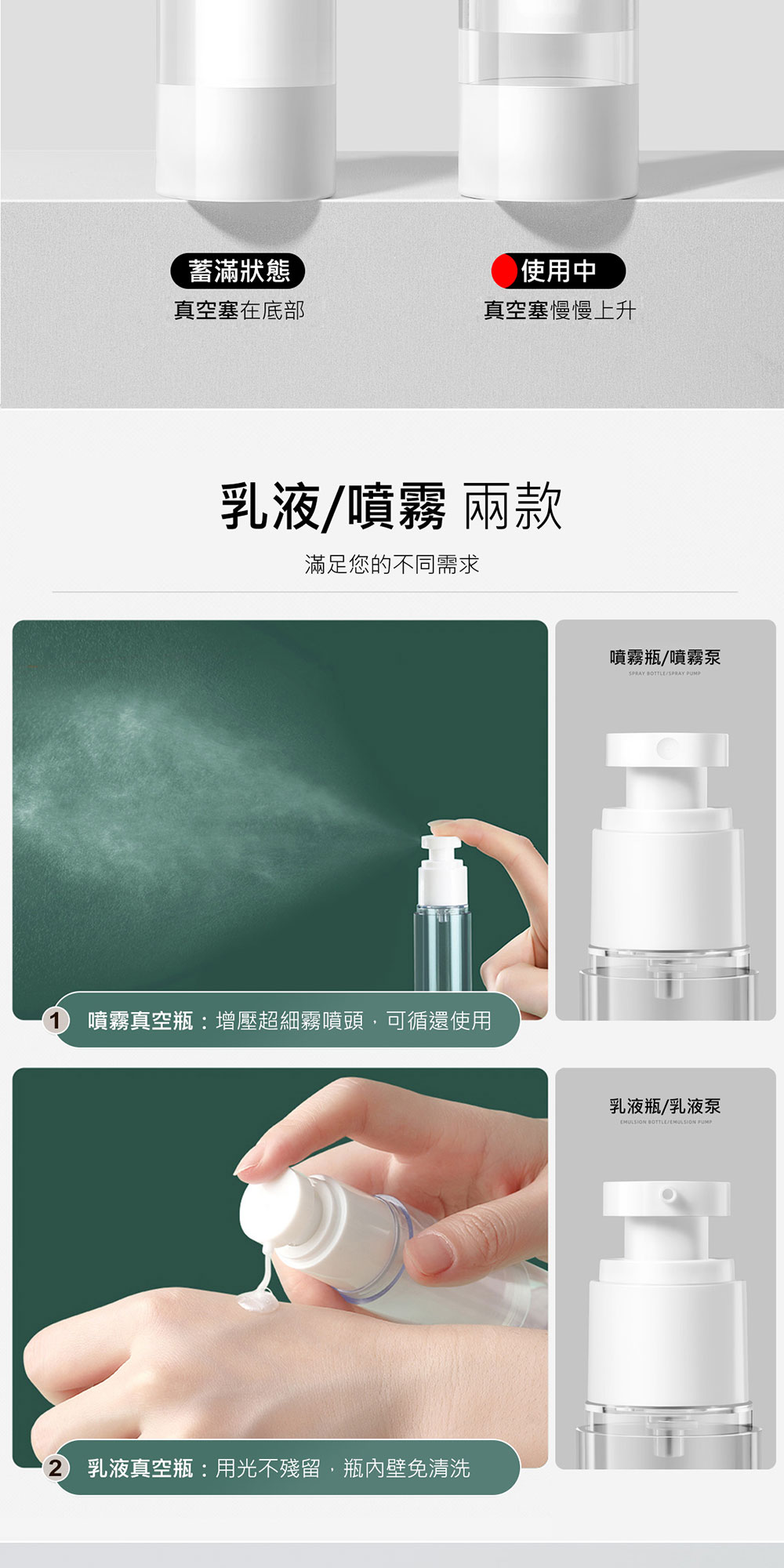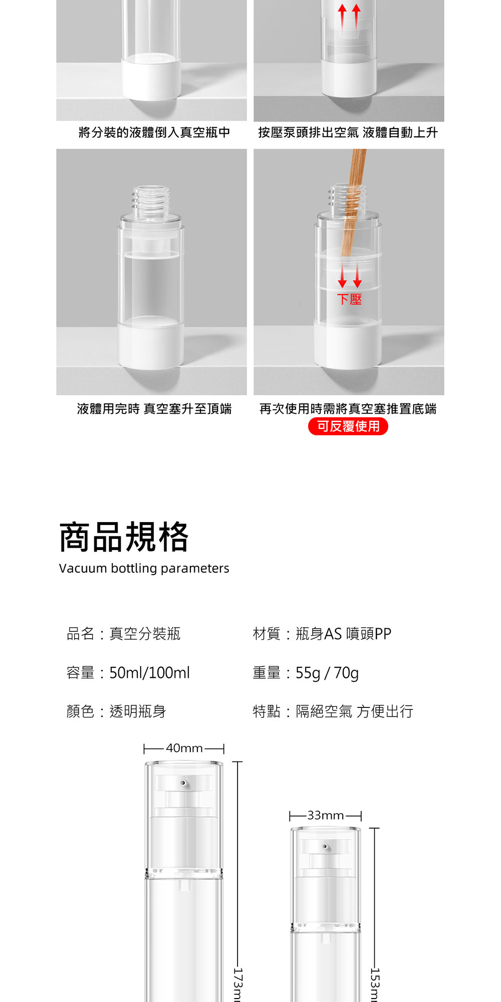 真空旅行分裝瓶 按壓式真空乳液瓶 真空分裝瓶 按壓式乳液化妝品 旅行乳液瓶 空瓶 化妝瓶 噴霧瓶