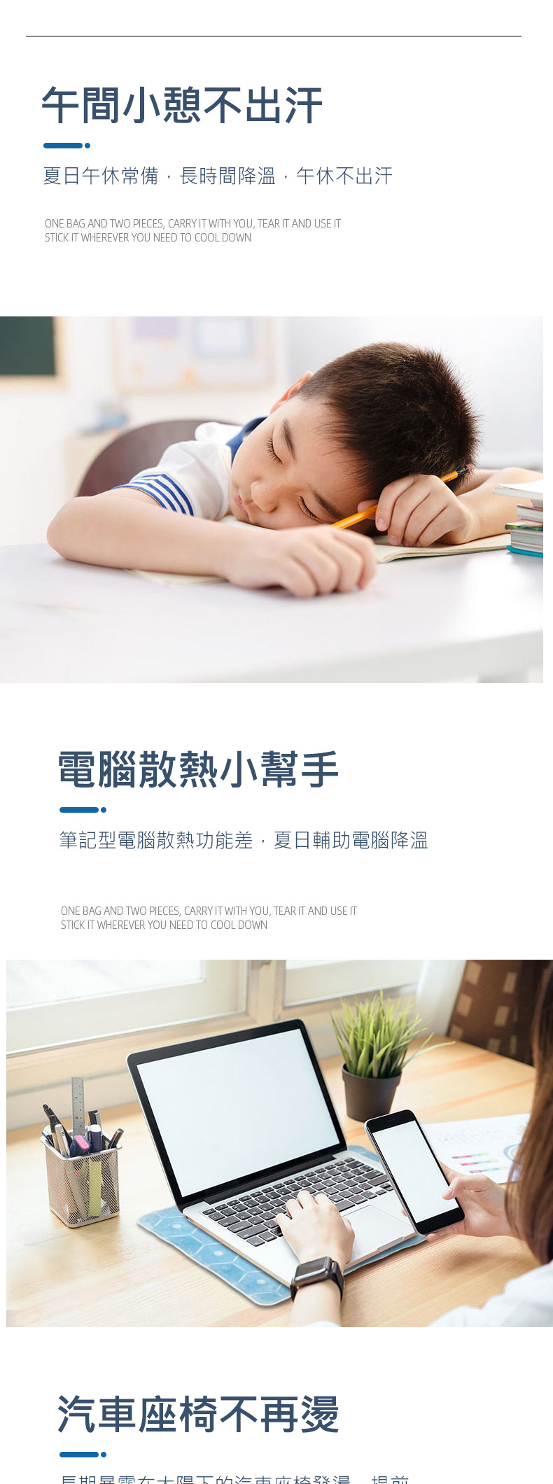 保持在人體舒適的溫度,產品恆溫26-29℃,不會造成冰灼傷/皮膚刺痛感,隨時保持最佳溫度。