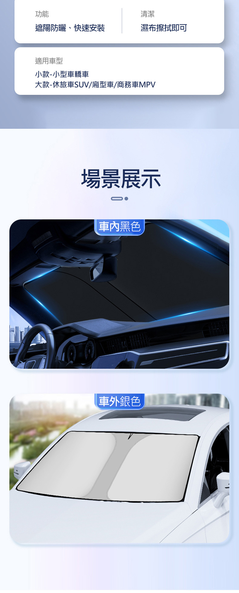 注意:購買前請先確認愛車前擋風玻璃尺寸,選取合適大小之遮陽傘