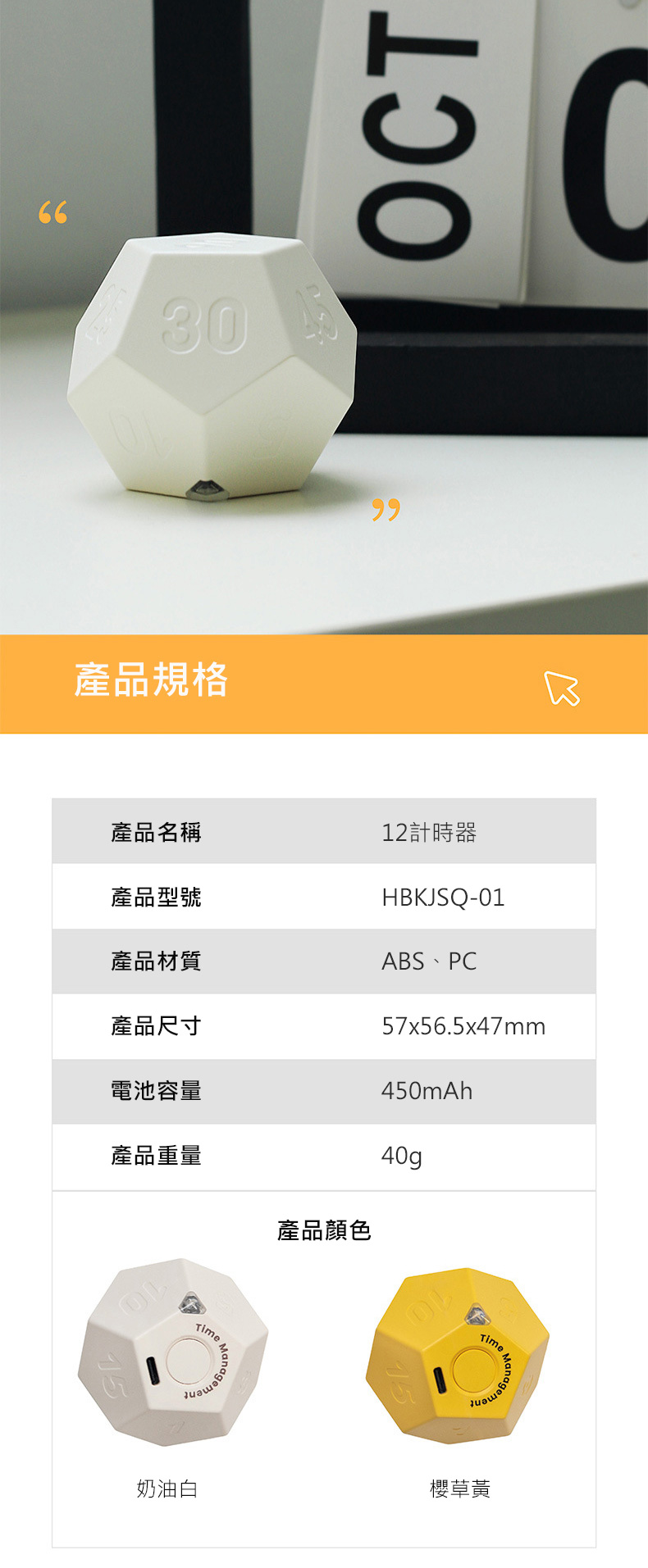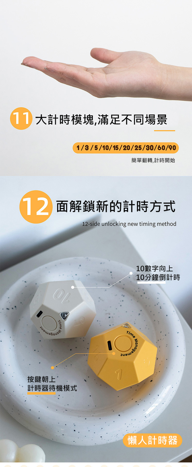 12面計時器 定時器 翻轉計時 時間管理器 烹飪/運動/學生學習計時 提醒器 免按鍵 (USB充電)