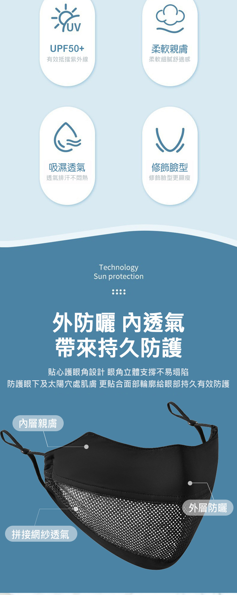 防曬係數UPF50+ 防悶熱 薄款 隱形全遮臉防曬面罩 騎行遮陽防紫外線面罩 3D立體面 高顏值