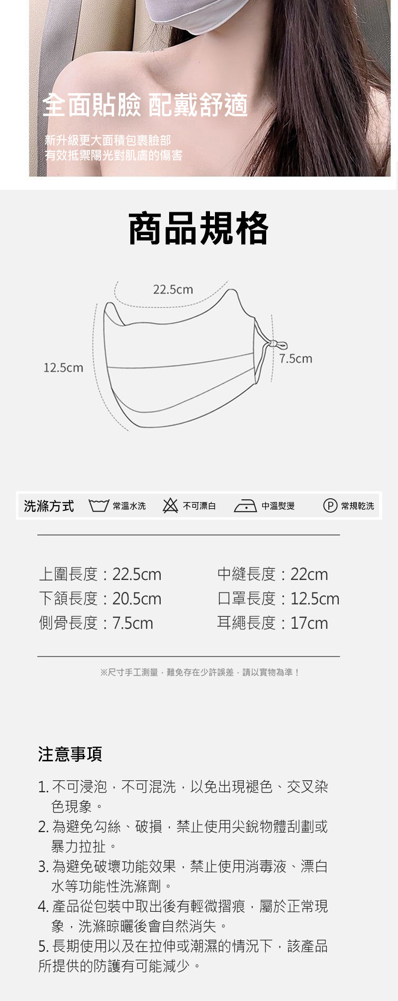 ●立體弧形剪裁,服貼臉部,修飾小V臉
