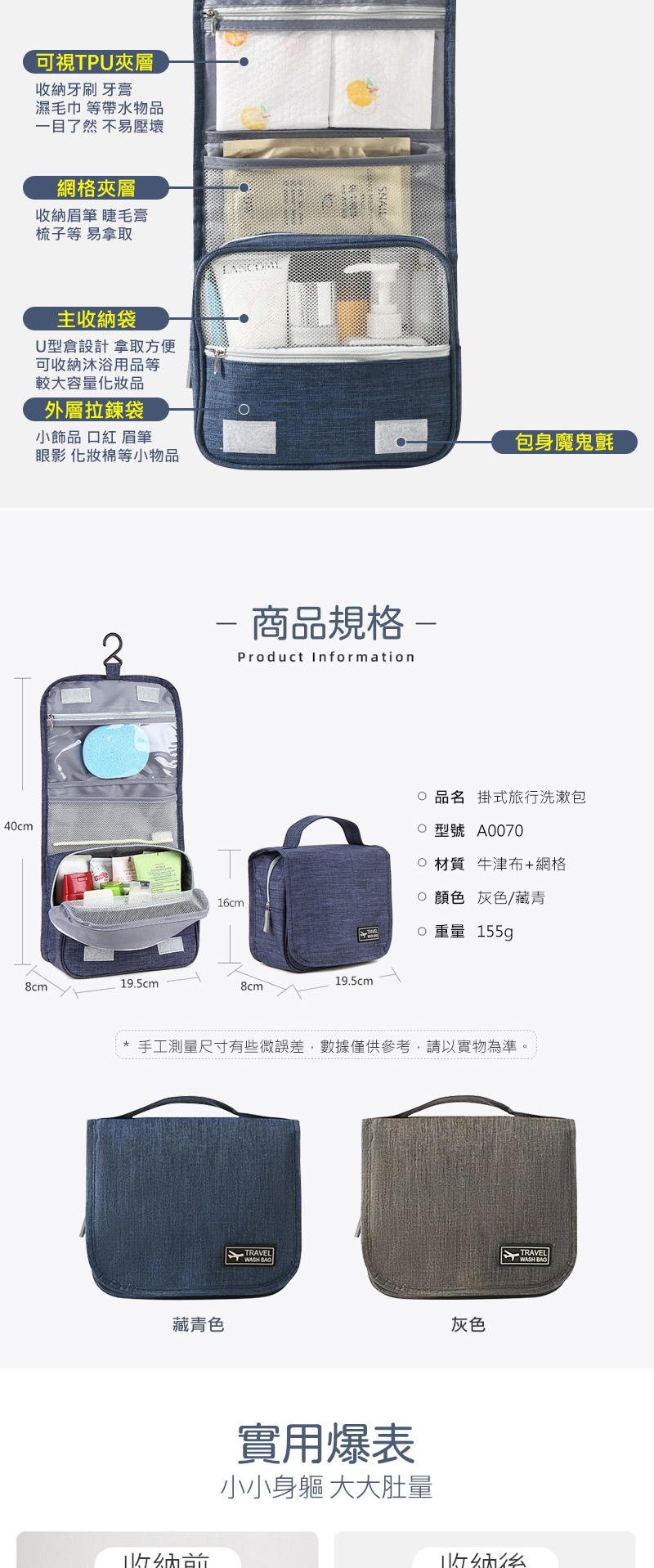 商品名稱:掛式旅行洗漱包