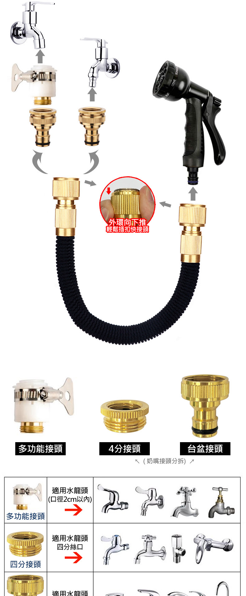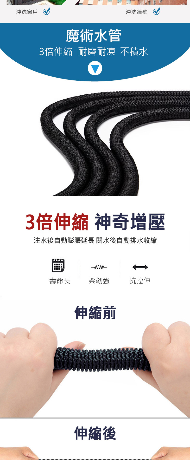 升級款~彈力魔術水管 3倍快扣伸縮水管 (8段式噴頭套裝)