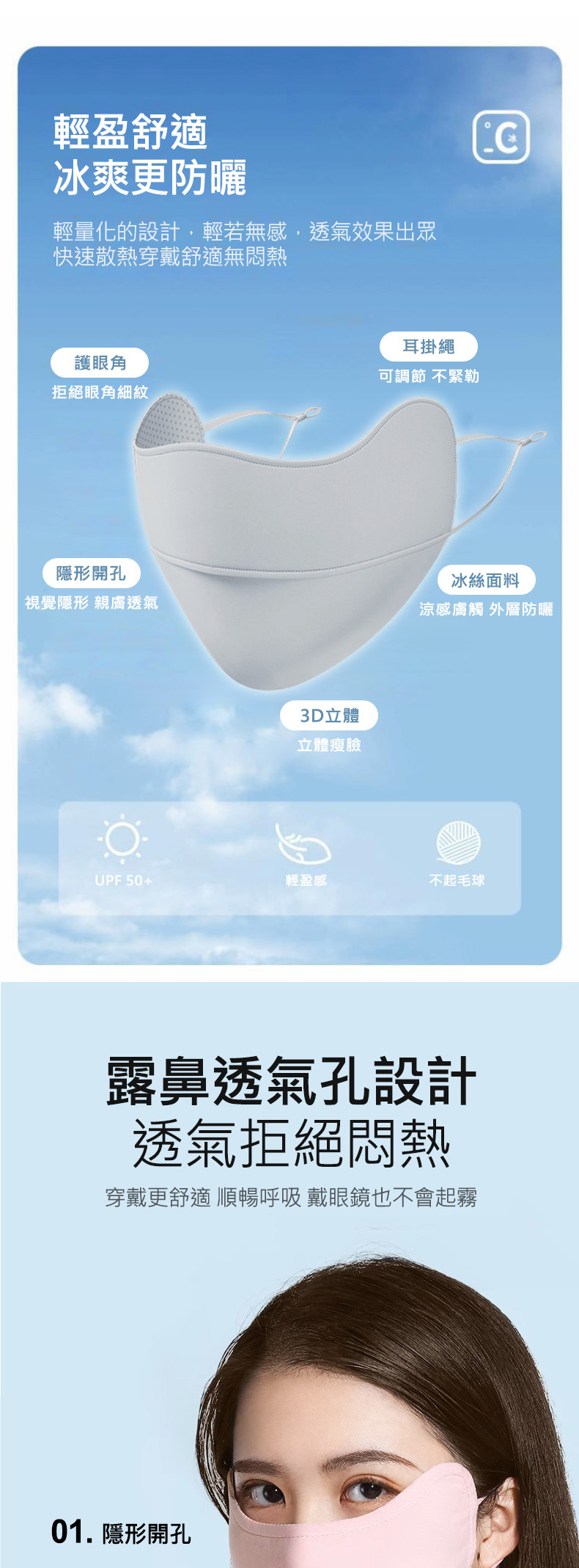 輕薄透氣面紗 抗UV口罩 夏季防紫外線 透氣口罩 阻絕髒污 防曬係數UPF50+ 防悶熱 薄款
