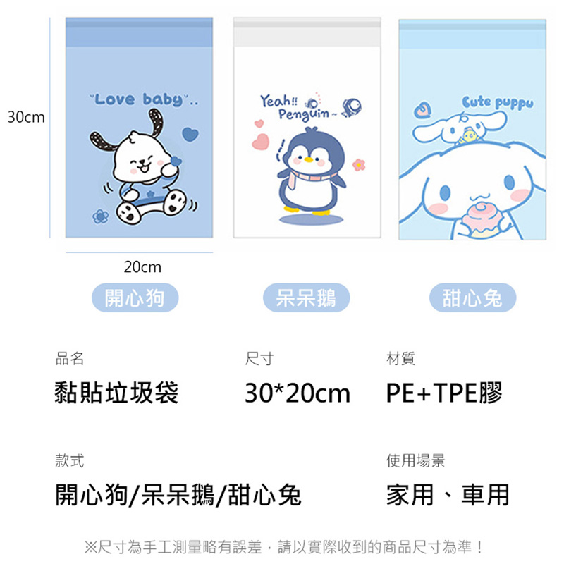 可封口嘔吐袋 廚房垃圾袋 車用垃圾袋 黏貼式可懸掛 桌邊垃圾袋 可愛收納袋 車用周邊 30入