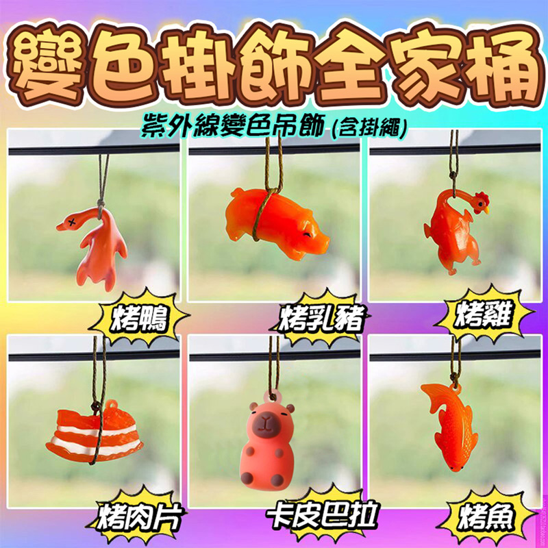 創意後視鏡燒烤掛飾 變色烤鴨掛飾(含繩) 烤鴨/烤雞/烤魚/烤肉片/烤乳豬/卡皮巴拉 吊飾 紫外綫變色吊飾