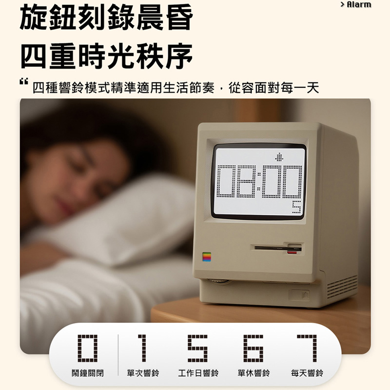 復古電腦 麥克鐘 Maclock 麥克電腦鬧鐘 時鐘 鬧鐘 經典復古桌面擺件 夜燈鬧鐘