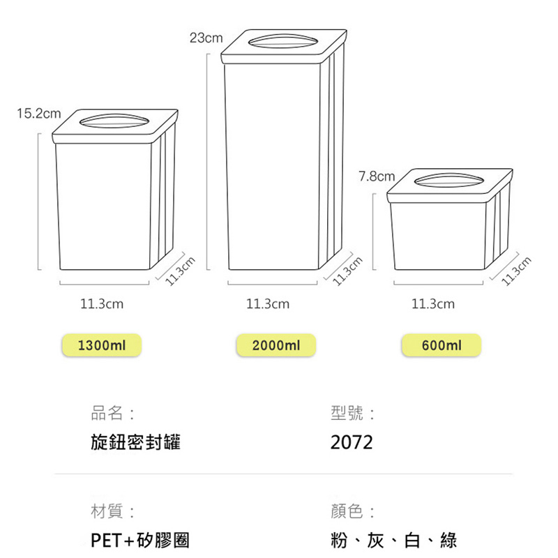 食用接觸級環保材質,三個規格可選600ml/1300ml/2000ml