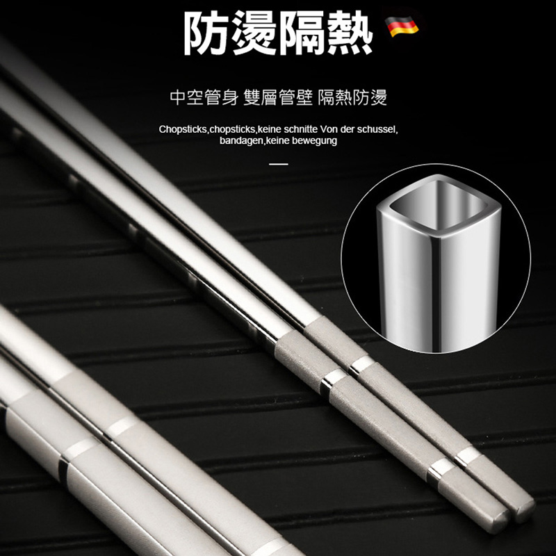 5雙★316不鏽鋼方形筷子 中空隔熱防燙方筷