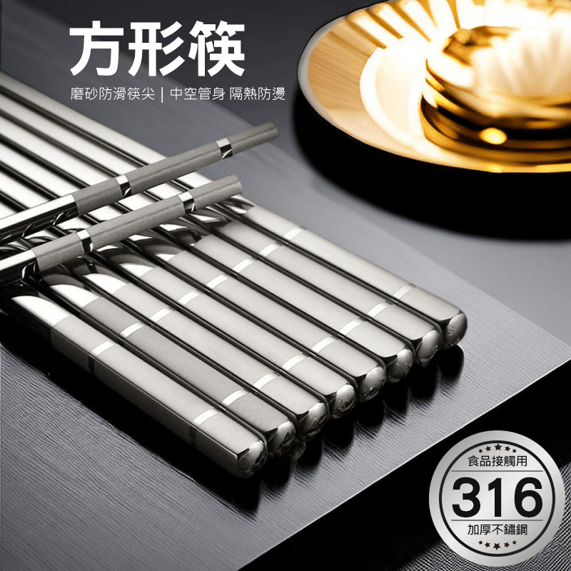 316不鏽鋼方形筷子 316不銹鋼筷 食品級316筷子 中空隔熱防燙 防滑家用餐具 方筷子 餐具 筷 方形筷