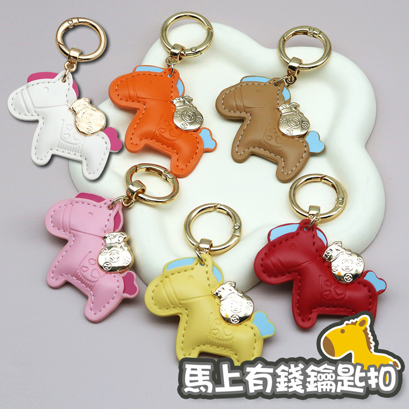 個性吊飾 小馬卡通鑰匙扣 馬上有錢吊飾 招財轉運鑰匙圈 錢袋金幣 多色可選 保平安旺事業