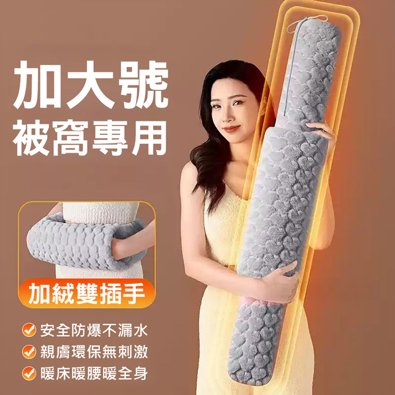 暖腰暖肚子神器 長型熱水袋2000ml 仿兔毛 雙插手可拆洗 灌水熱水袋 可插手 超長防爆 注水大號暖水袋