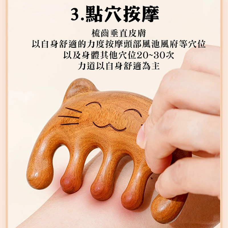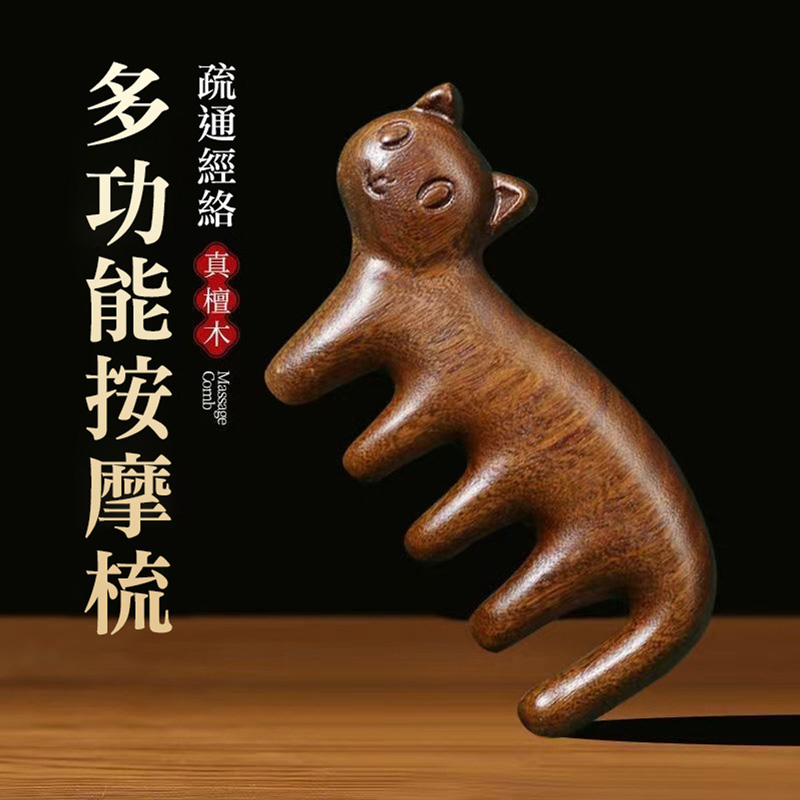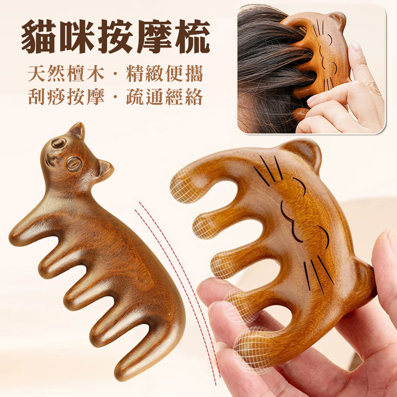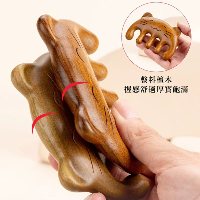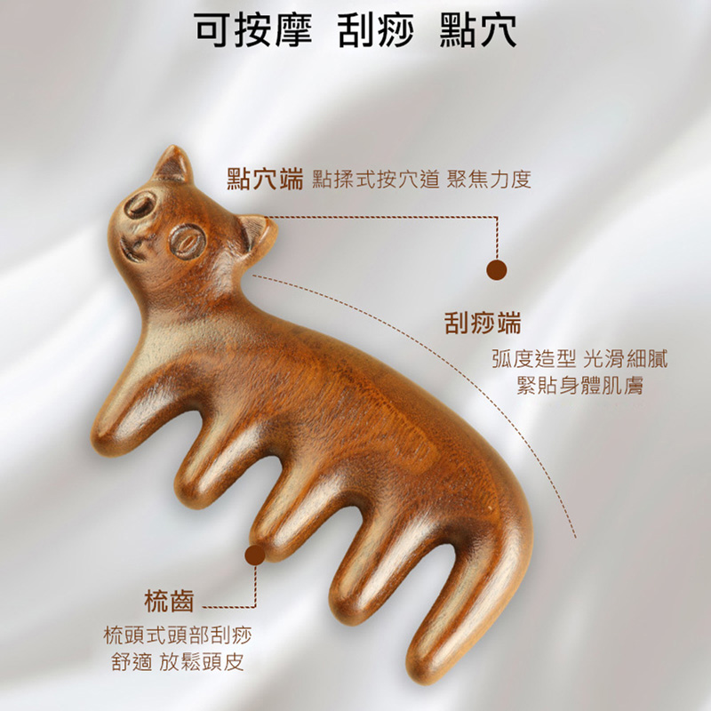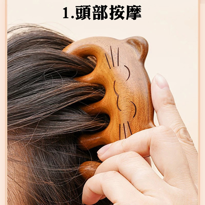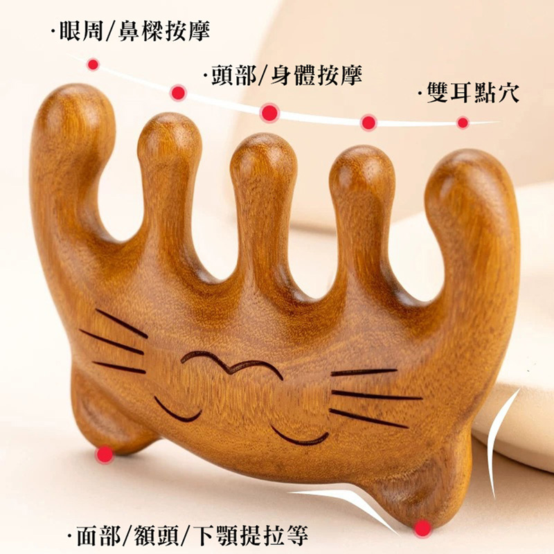貓頭檀木按摩梳 貓咪笑臉按摩梳 天然檀木梳 按摩刮板 刮痧板 按摩頭皮/頸部/肩膀/小腿