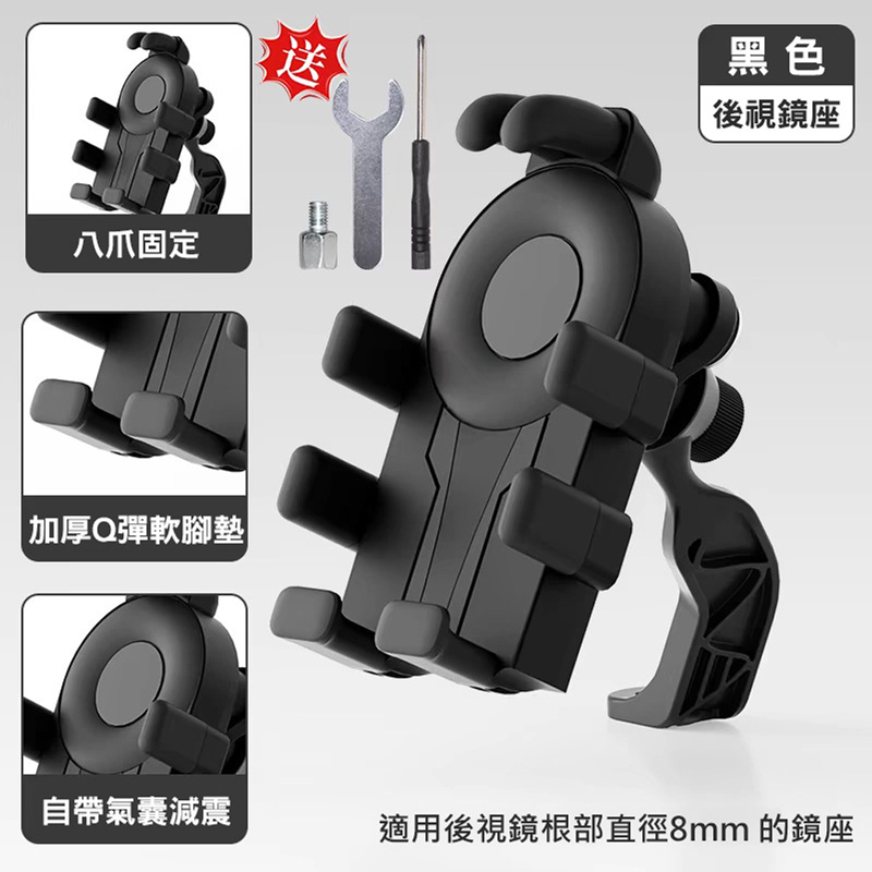 機車/電動車騎乘外帶導航支架 八爪支架 專業摩托車架(裝手機殼可用) 後視鏡固定款