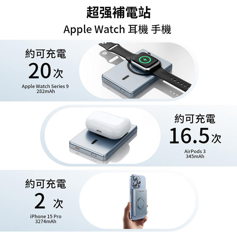 超強補電站 磁吸可充Apple Watch手錶、耳機、手機,三合一支援充電