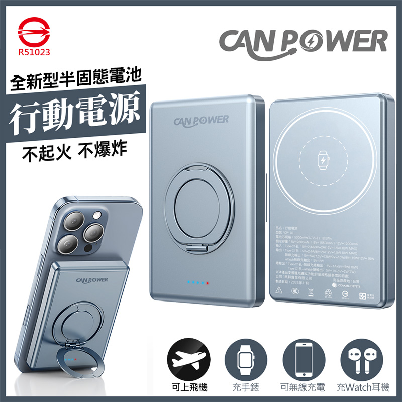 半固態行動電源 半固態電池超薄磁吸 可充手錶 360°旋轉支架 半固態防爆 無線充電