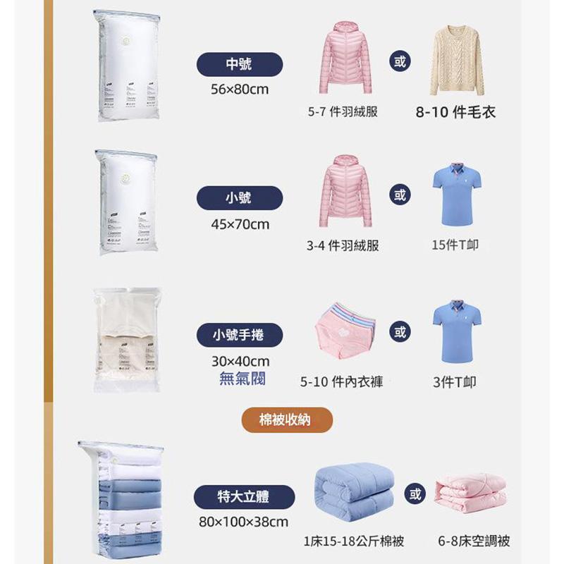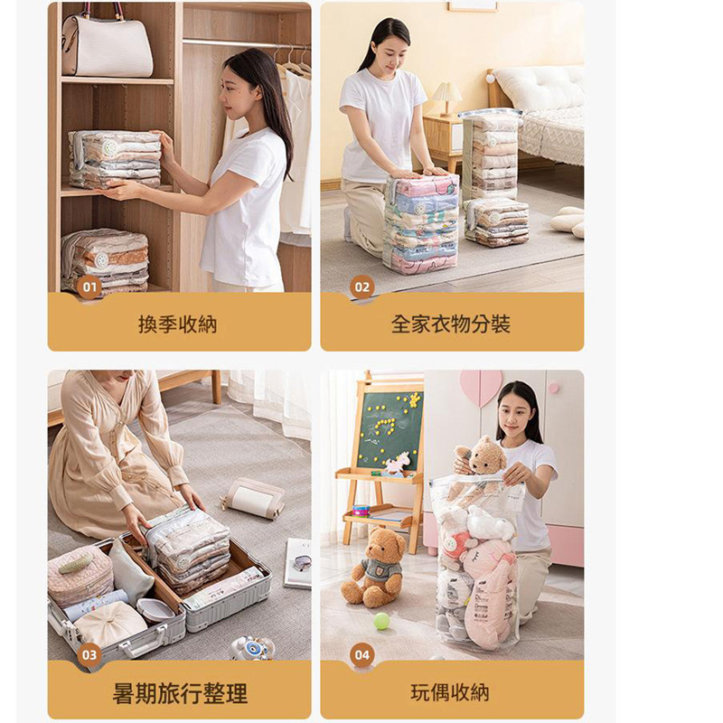 收納內容:旅行壓縮收納或衣物/外套/羽絨衣/棉被等換季收納