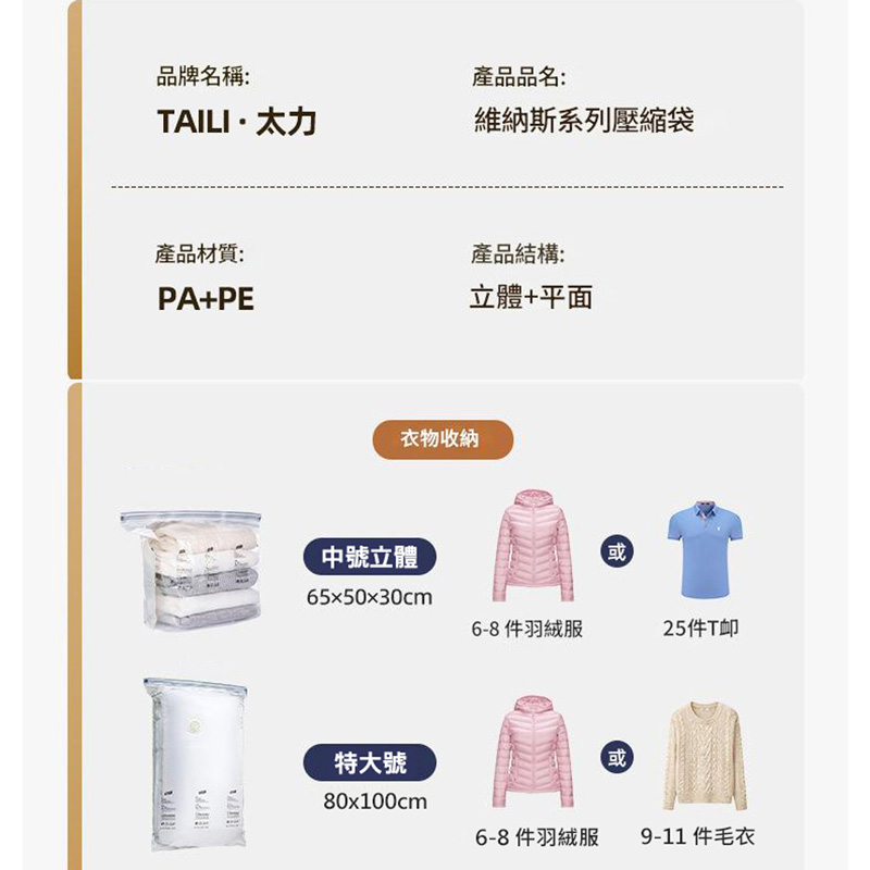 TAILI 太力 真空袋 真空壓縮袋 可重複用 棉被衣物收納