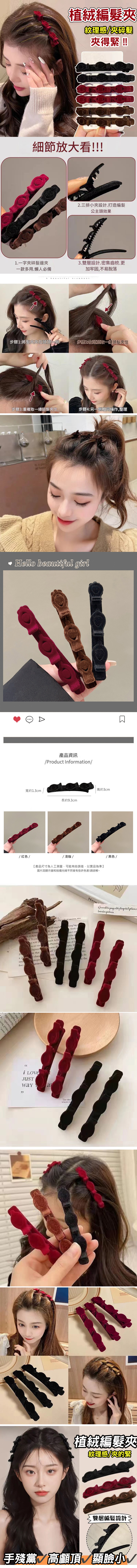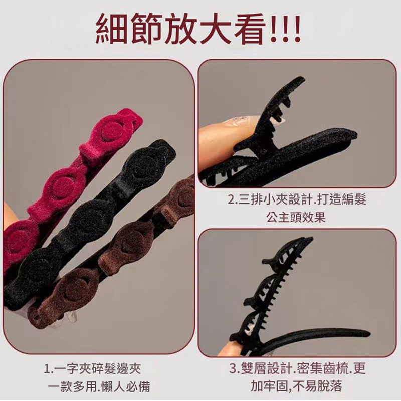 三排小夾設計.打造編髮公主頭效果