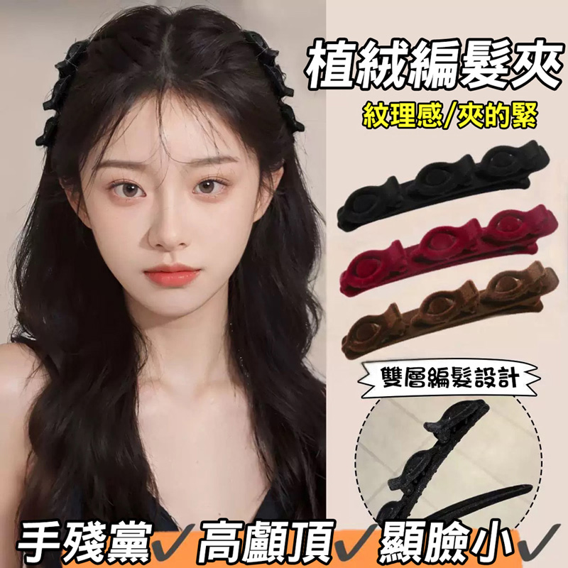網紅同款植絨編髮夾 絲絨側邊夾 編髮神器絲絨側邊夾 懶人瀏海造型夾 前額劉海夾子 髮卡 植絨邊夾