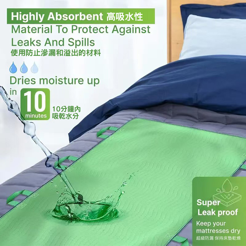 • 防漏+移位提把+快乾 三合一 防水隔尿墊