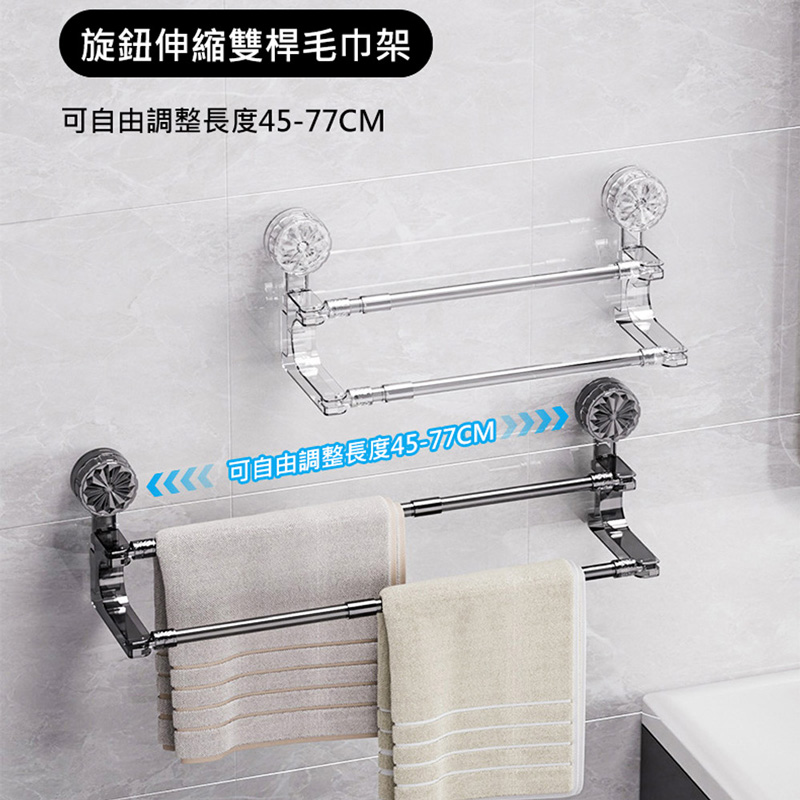 品名:吸盤雙桿伸縮毛巾架