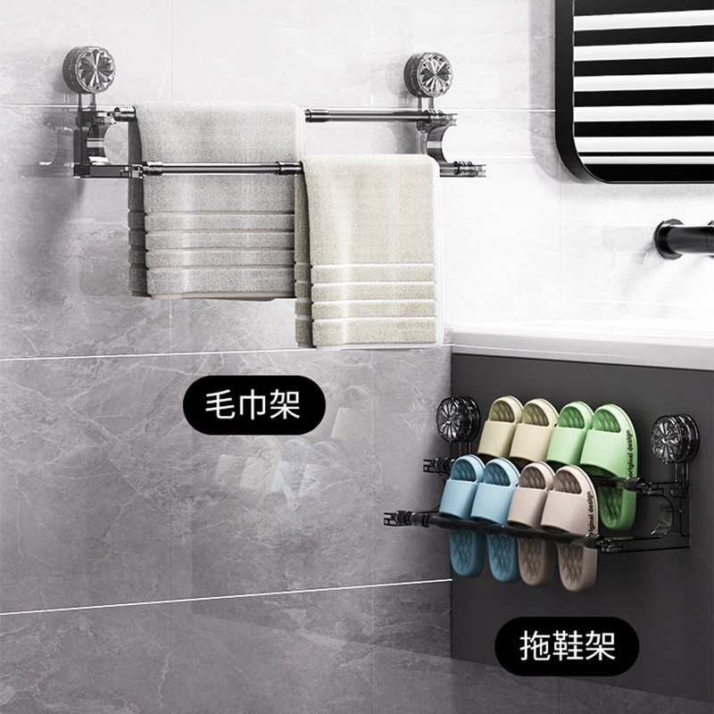 免打孔吸盤雙桿伸縮毛巾架 吸盤旋轉伸縮毛巾桿 浴巾架 無痕毛巾架 免打孔毛巾架