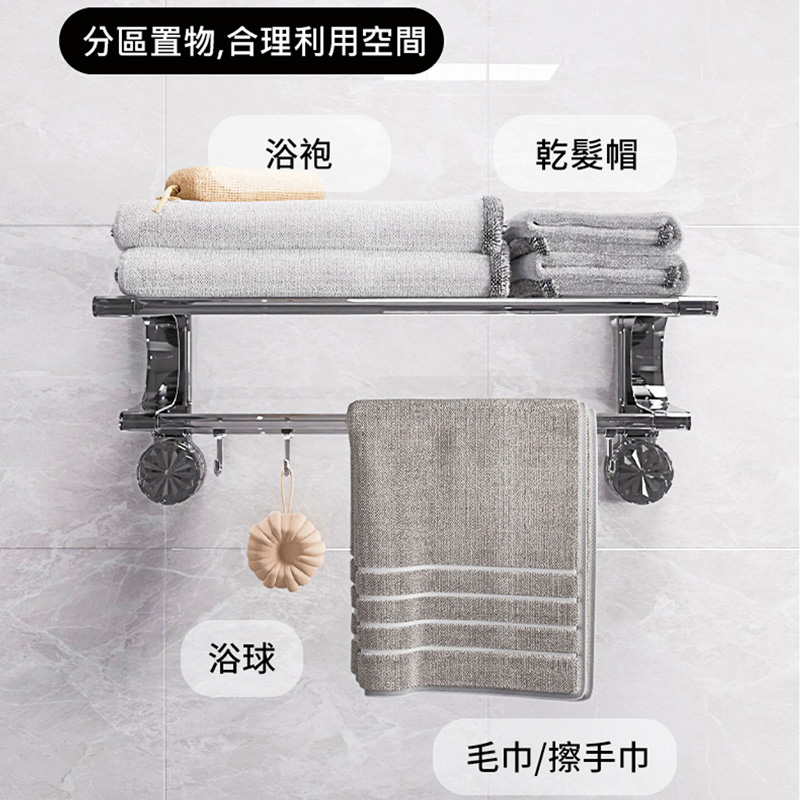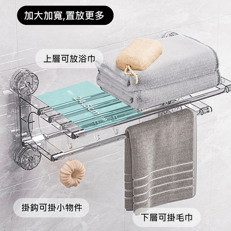 加大加寬,置放更多 上層4桿置物檯 牆面平台24.5cm 可放浴巾/毛巾通風速乾