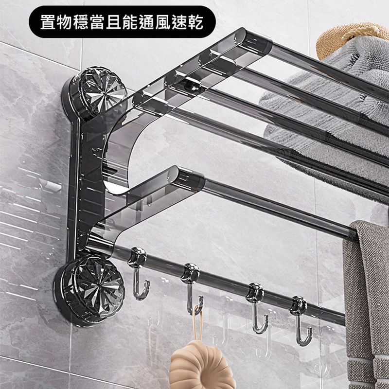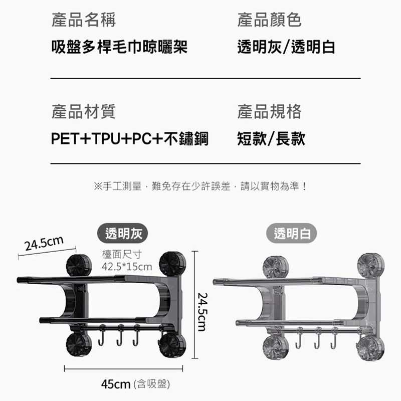 吸盤6桿毛巾晾曬架 多桿浴巾置物檯(短款/透灰)