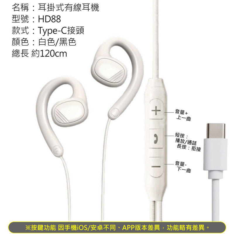 耳夾式Type-C掛耳式有線耳機高 無疼不入耳式 線控帶麥通話 追劇/運動 線控調音 立體聲耳機 圓頭麥克風