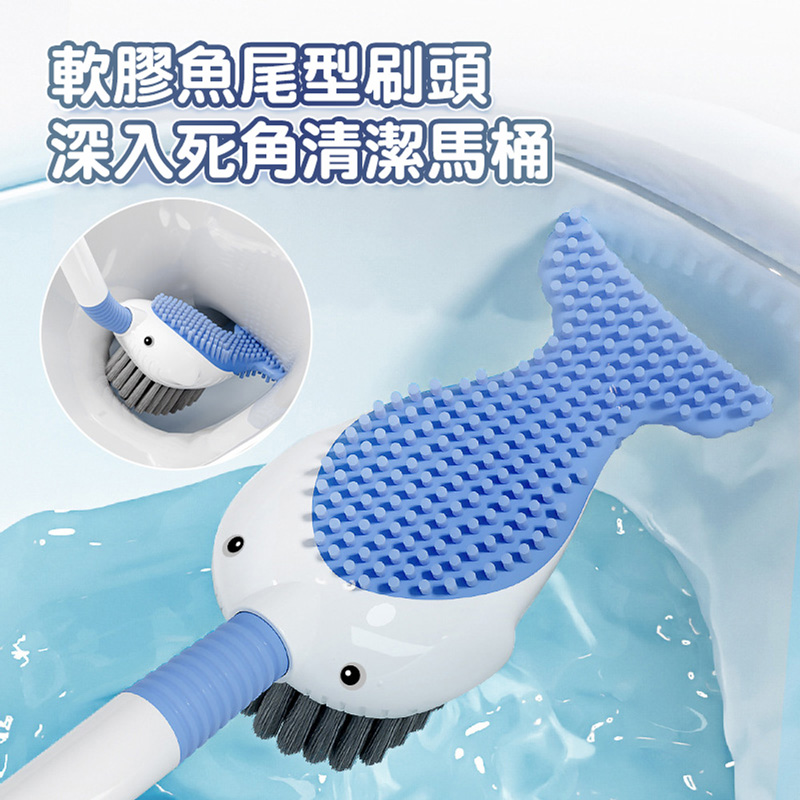 可愛小鯨魚造型 矽膠+毛刷雙面刷頭,刷馬桶也能有好心情