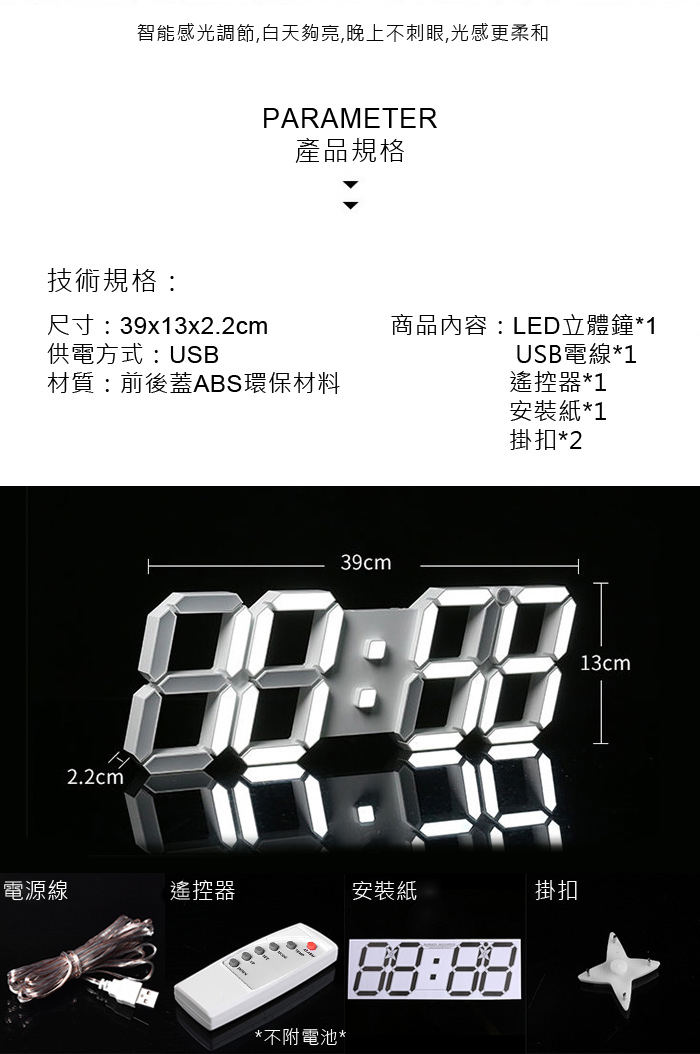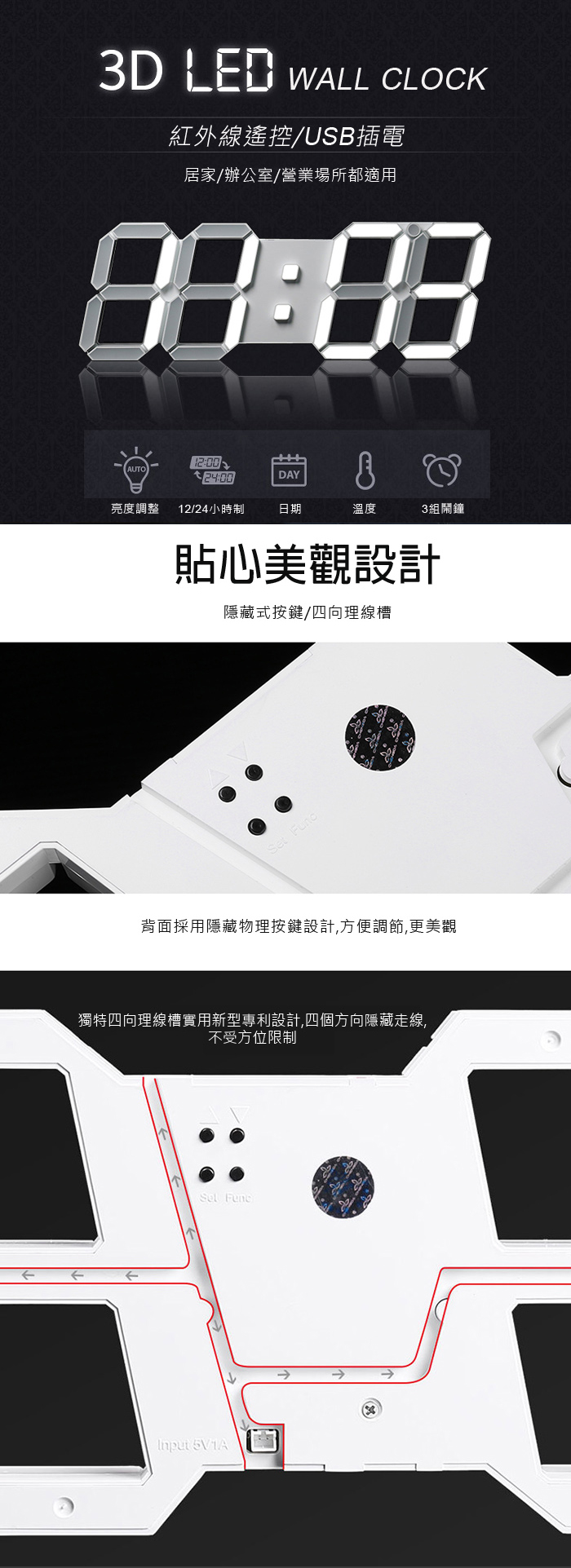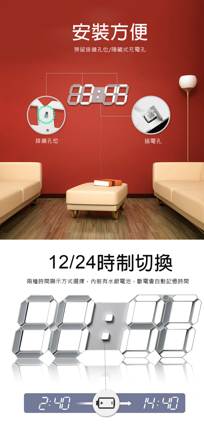 3D LED立體數字鐘 (大款) 電子鬧鐘 牆面立體掛鐘 LED時鐘 LED掛鐘 數字鐘 掛牆鐘 電子時鐘 當你沉睡時