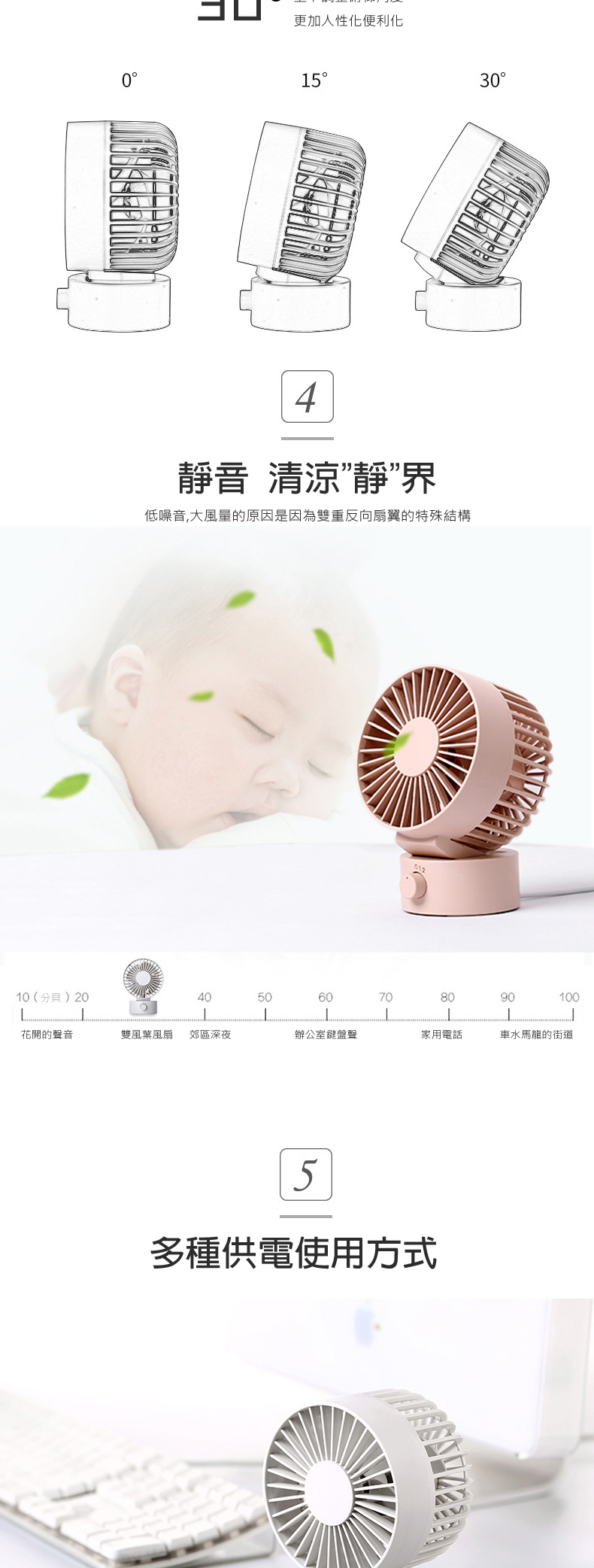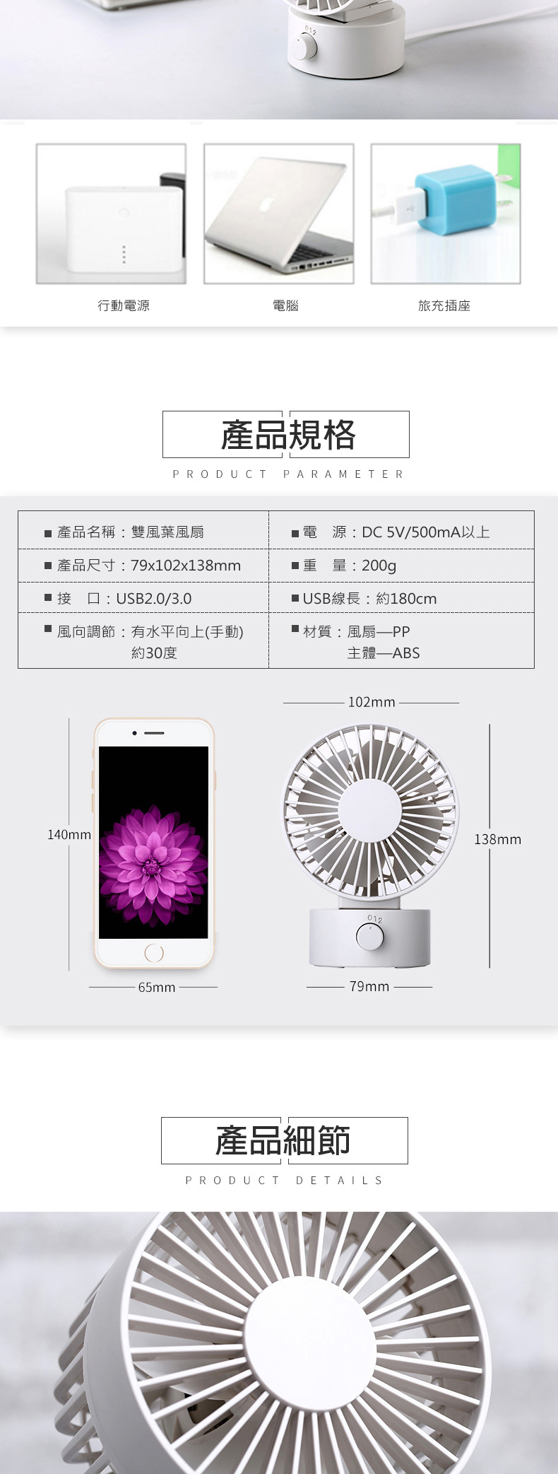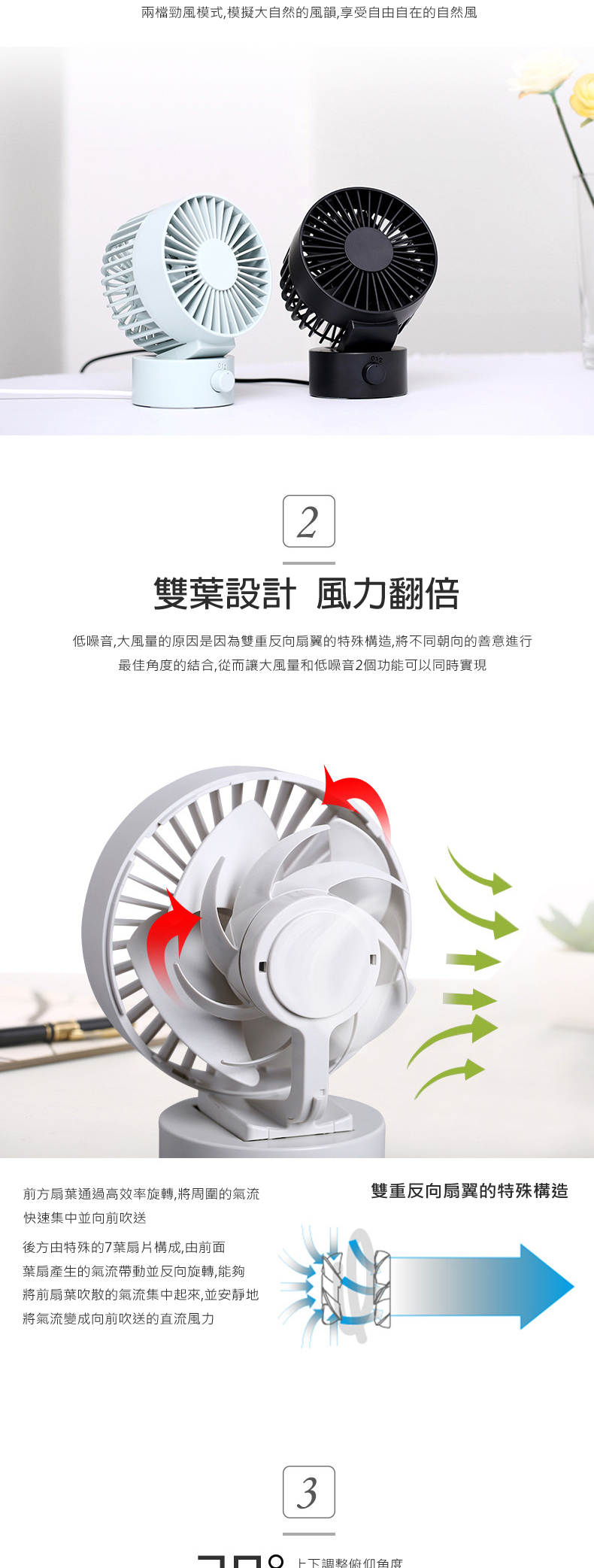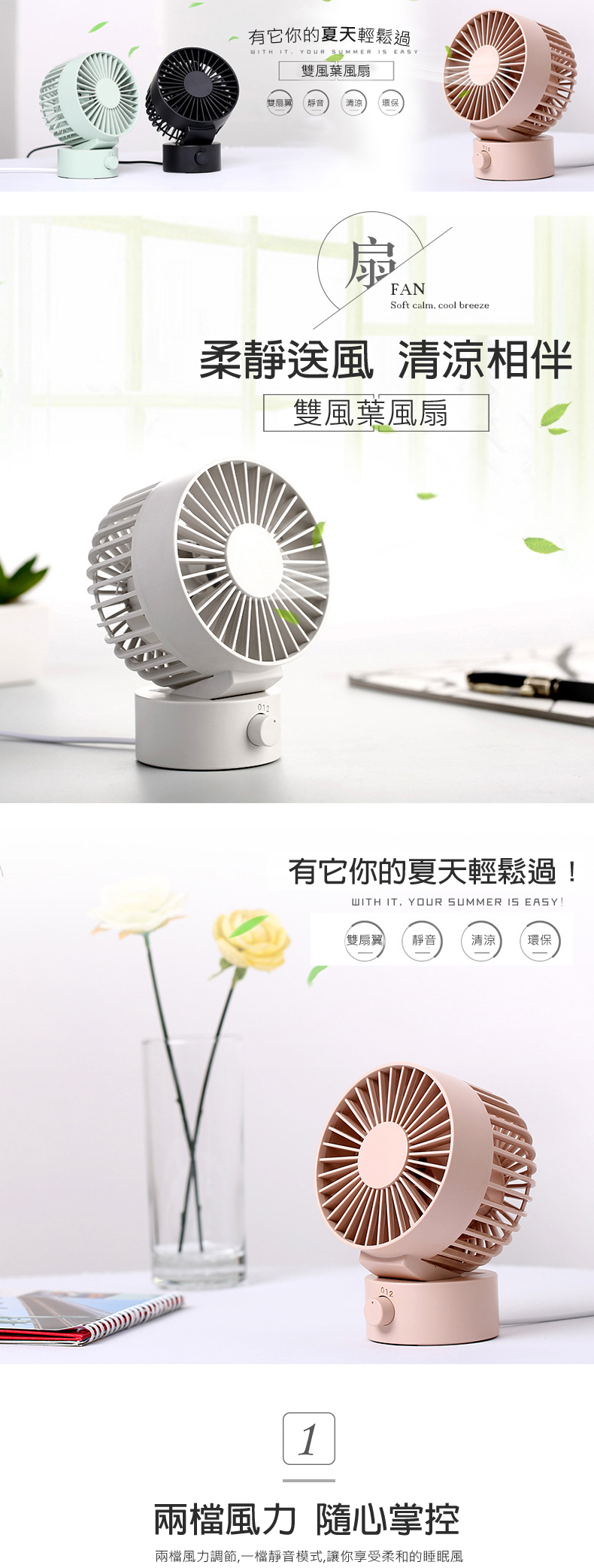 日系風 雙扇靜音風扇 雙葉翼電扇 超靜音+上下角度調整+雙葉設計 USB桌扇 辦公室 宿舍