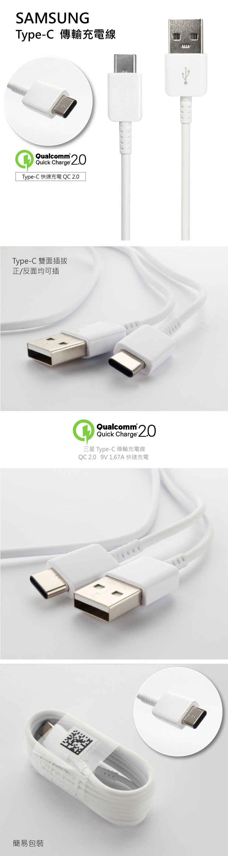 三星 平輸原廠 Samsung Galaxy A8 2018 Star A9 S9 Plus Note9 Note7 N930F 專用 TYPE C 數據線 QC 2.0 傳輸線 手機充電線 EP-DN930CWE (1.2米/白色)