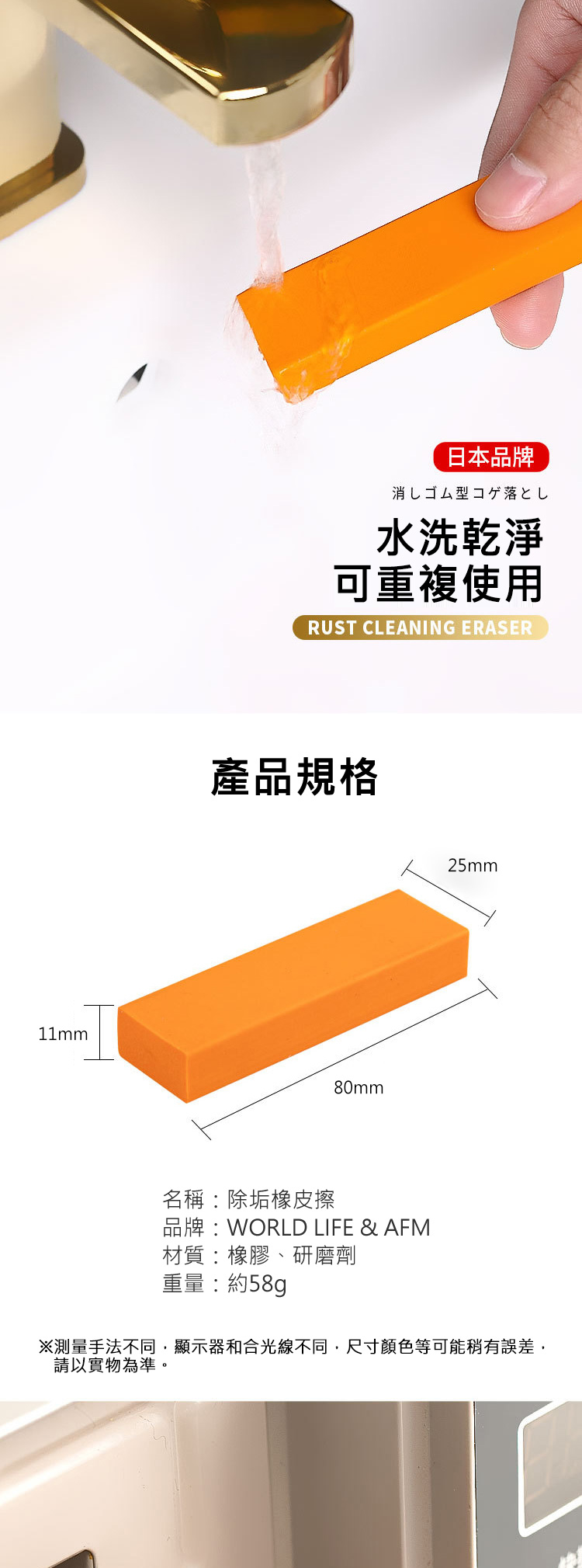 日本監製 除水垢橡皮擦 除水垢橡皮擦 去汙橡皮擦 除水垢水鏽清潔橡皮擦 多功能清潔橡皮擦