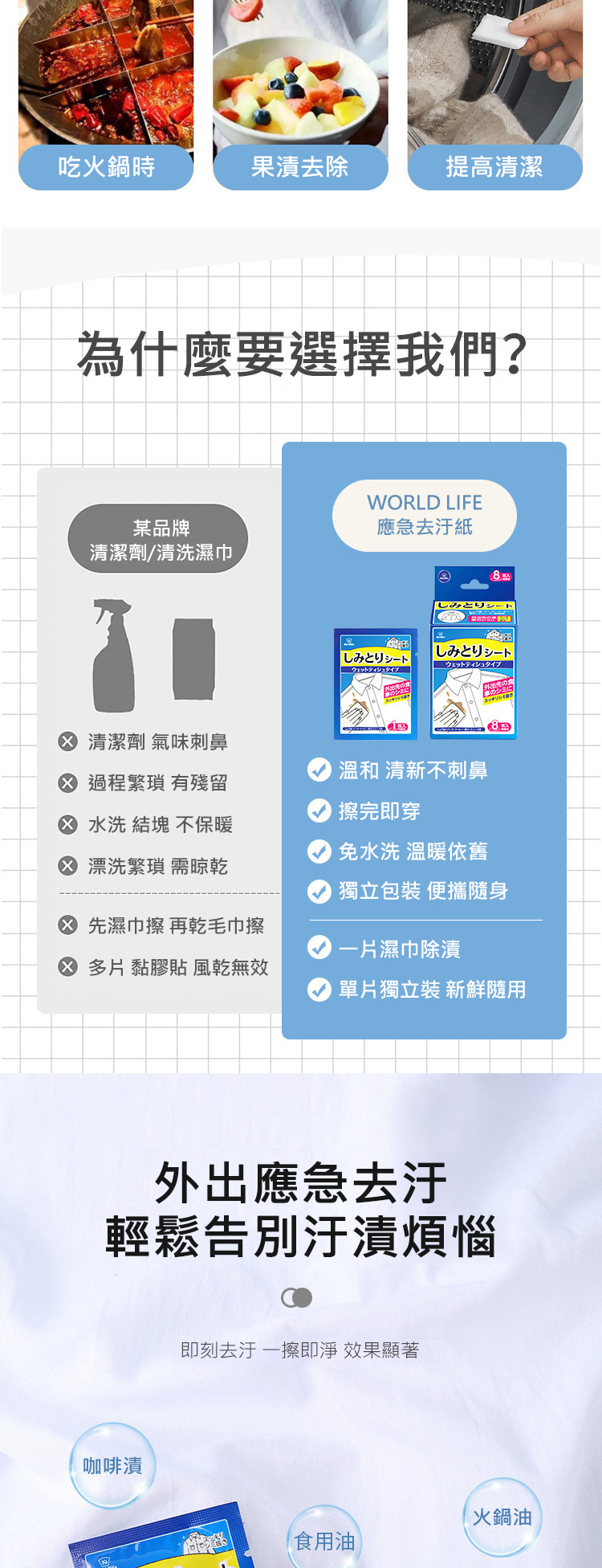 World Life 應急去汙紙 衣物去污渍 衣物去污濕巾 一次性清潔巾 衣服去汙濕巾 衣物去汙紙