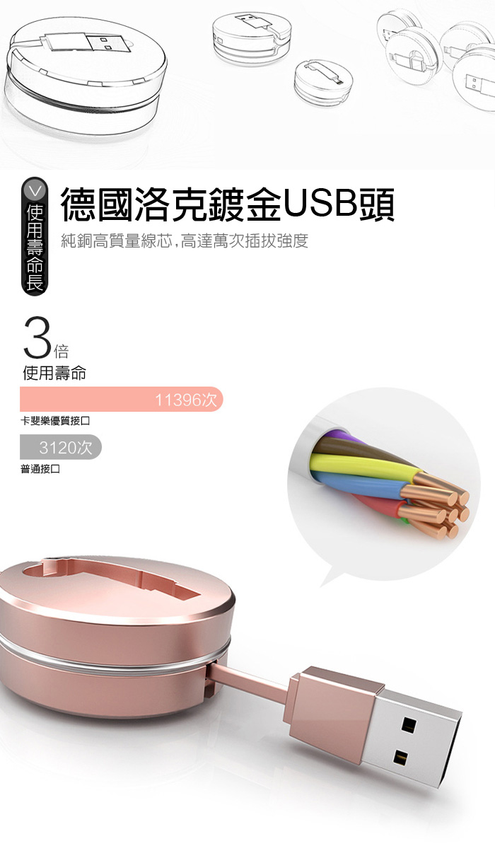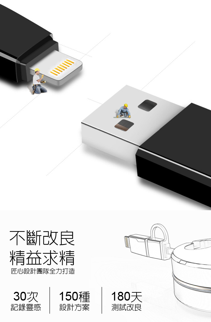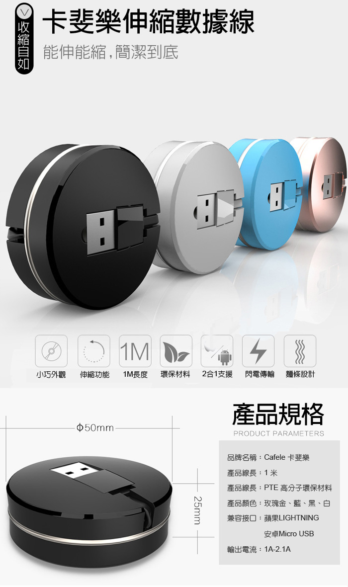 CAFELE 圓形 二合一伸縮線 Apple 8Pin & Micro USB 雙接頭 隱藏線材 扁線型 加贈收納盒