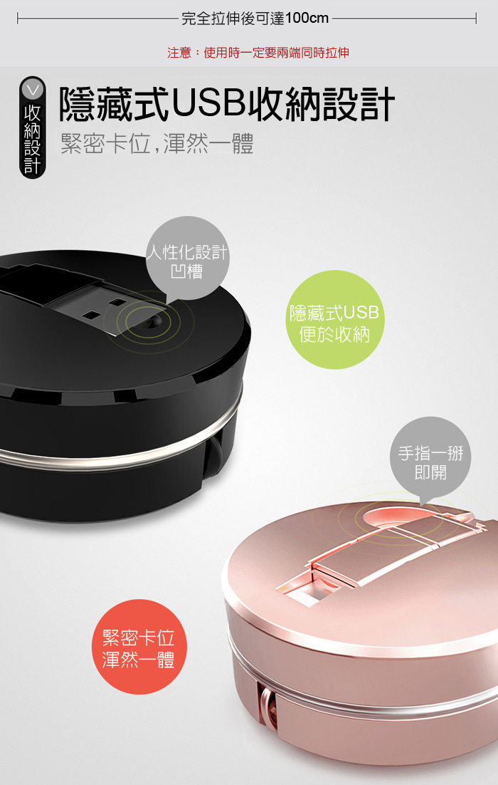 注意:伸縮扁平綣線式設計,須雙向同步拉開,只拉一邊會吃線
