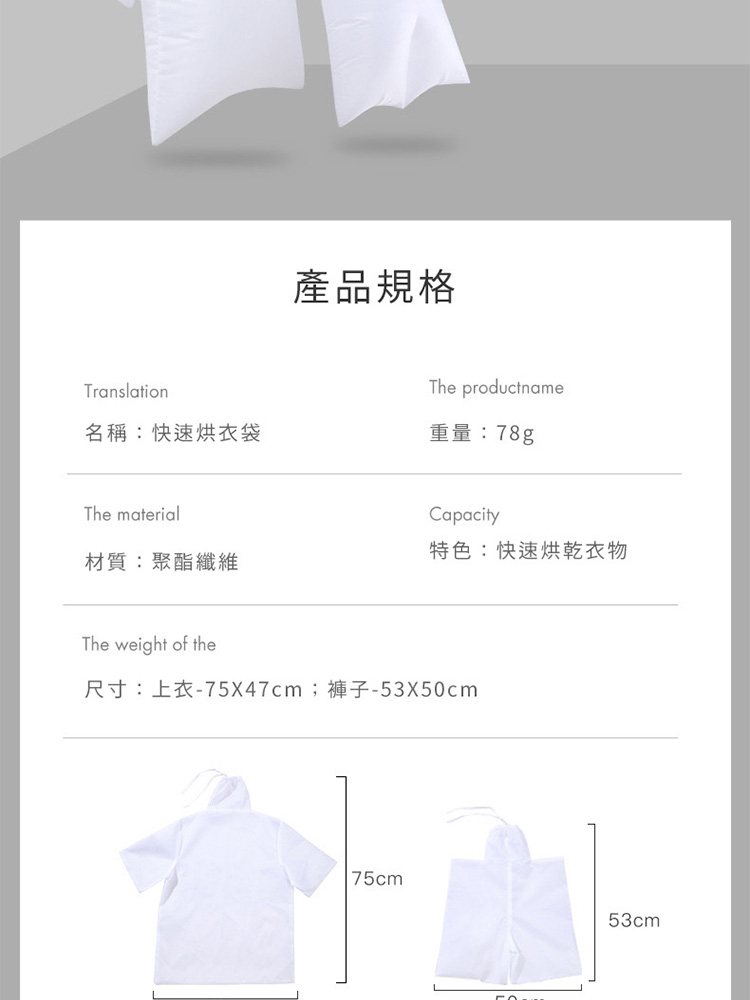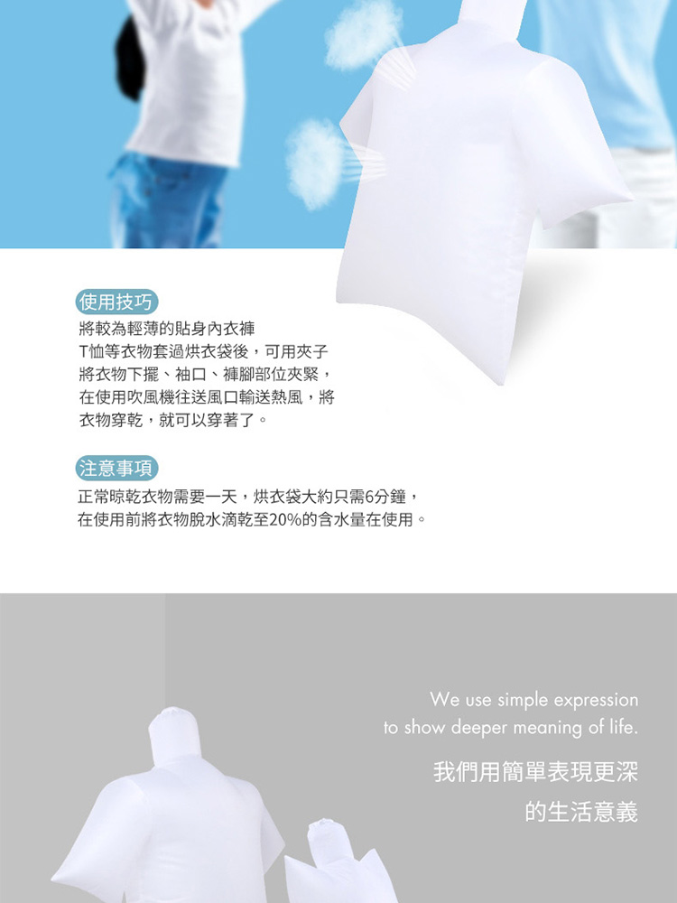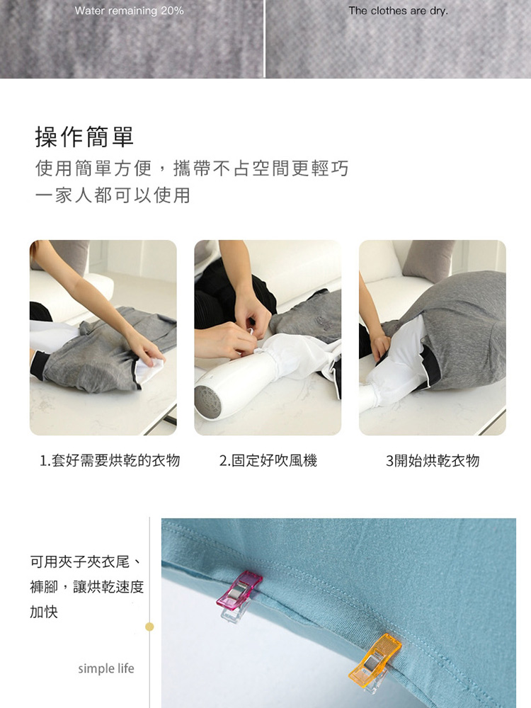 烘衣神器 烘衣袋 快速烘乾衣物、褲子 出國旅遊必備 需搭配吹風機使用