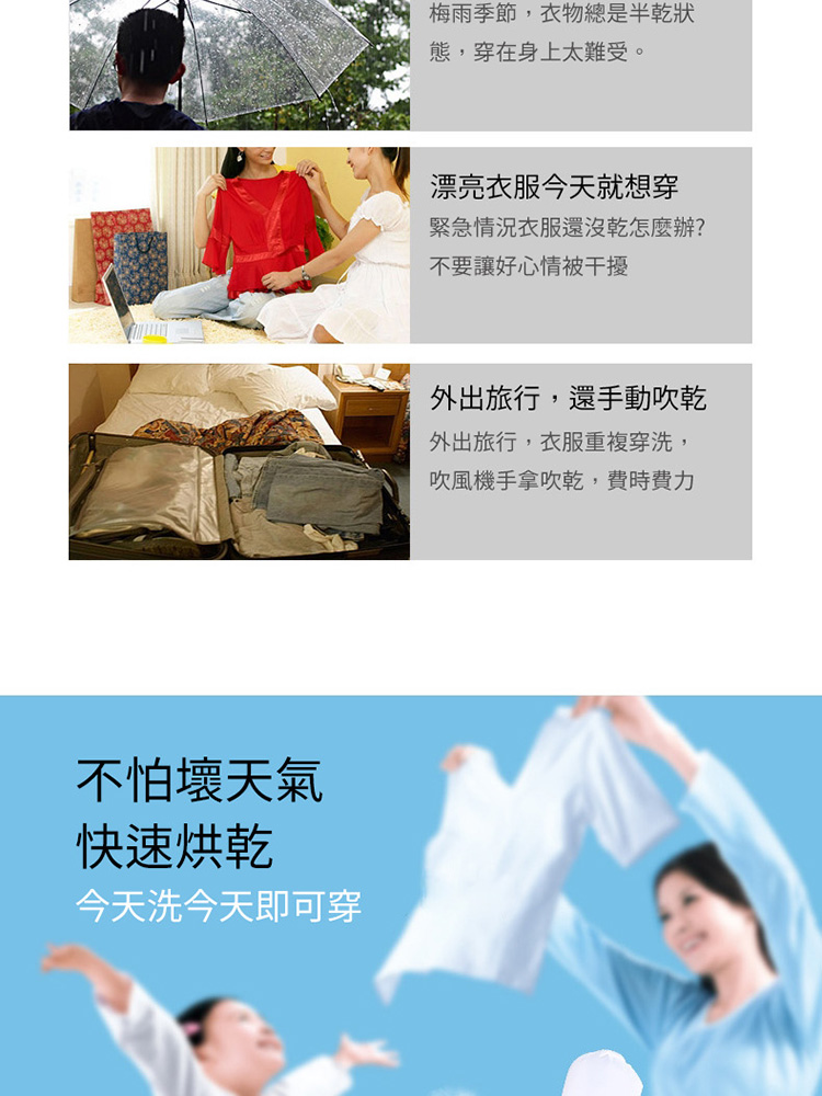 單身租屋族、學生宿舍、出國旅行等,衣服今天洗,馬上烘,明天立即穿