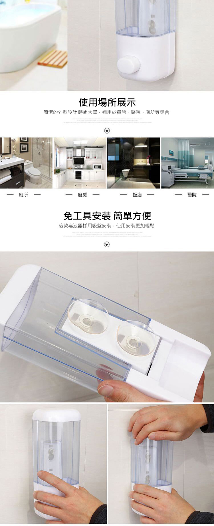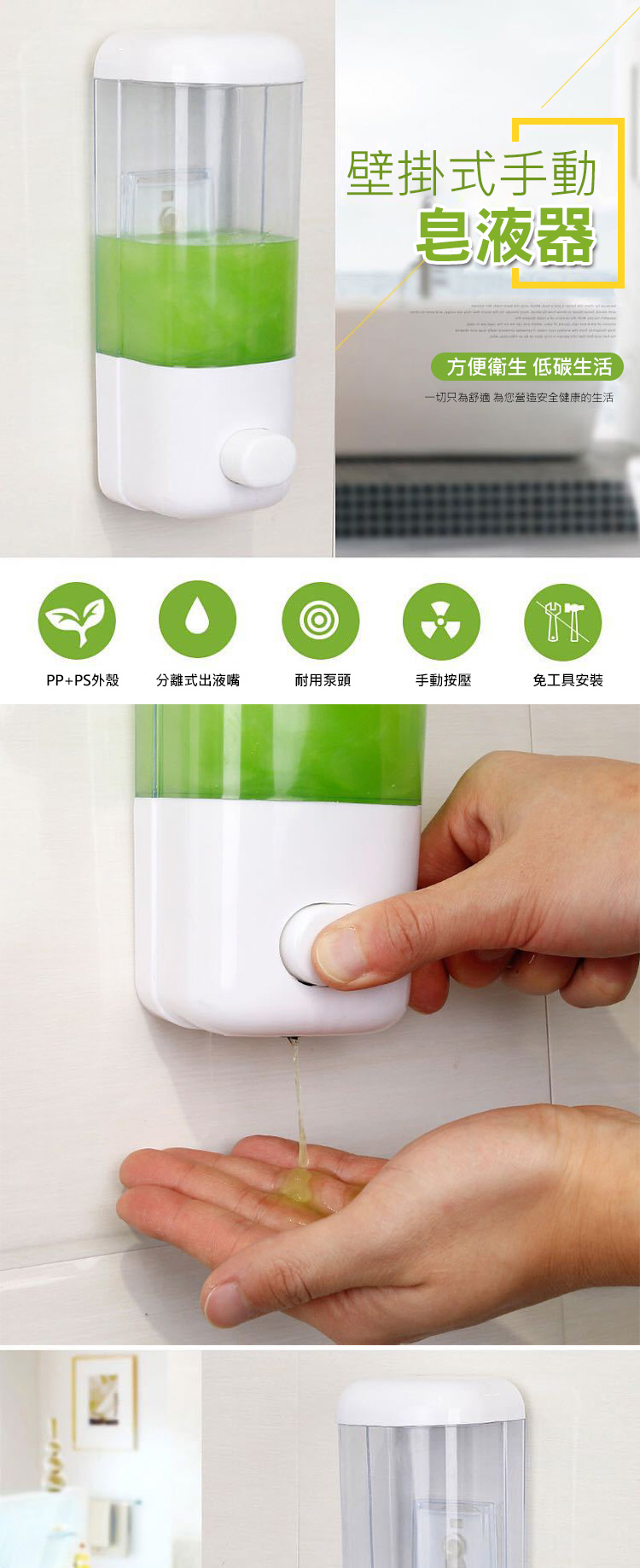 壁掛手動式出皂,免打孔安裝吸盤固定