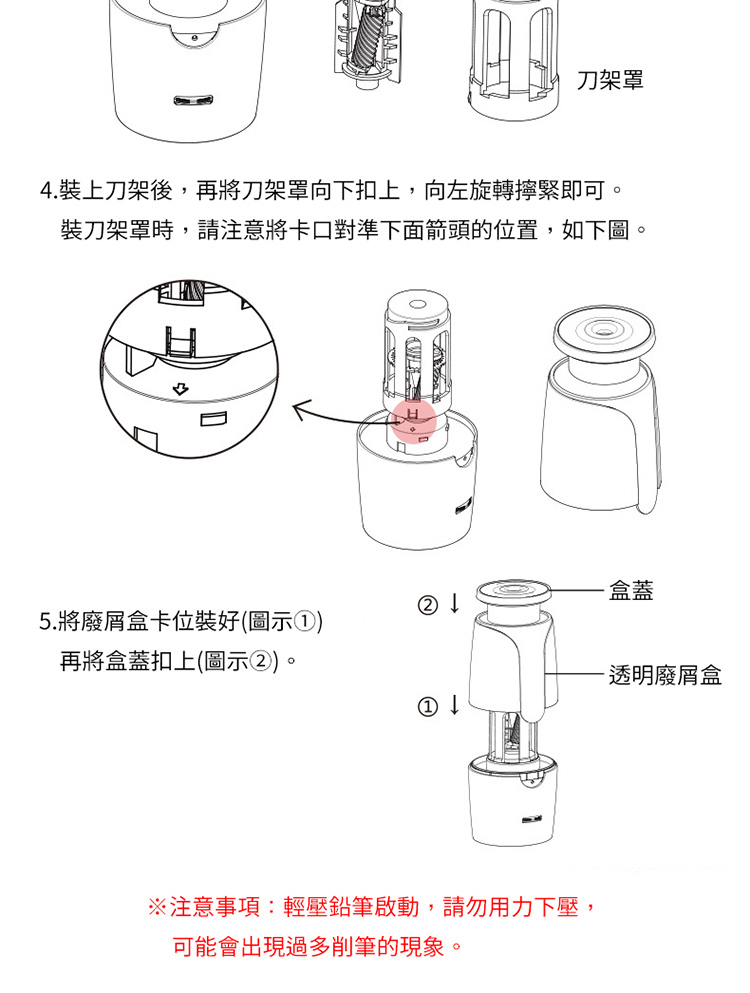 ●將筆插入就自動削尖,鈍筆3秒就可削尖,新筆6秒