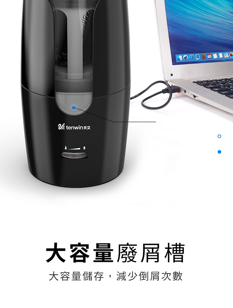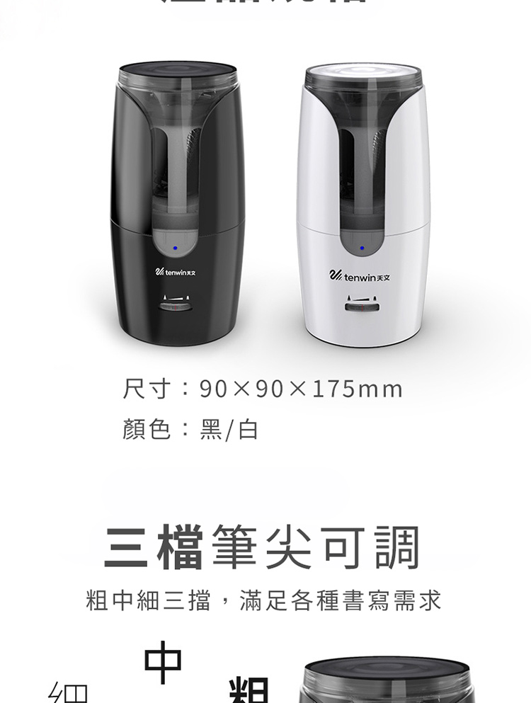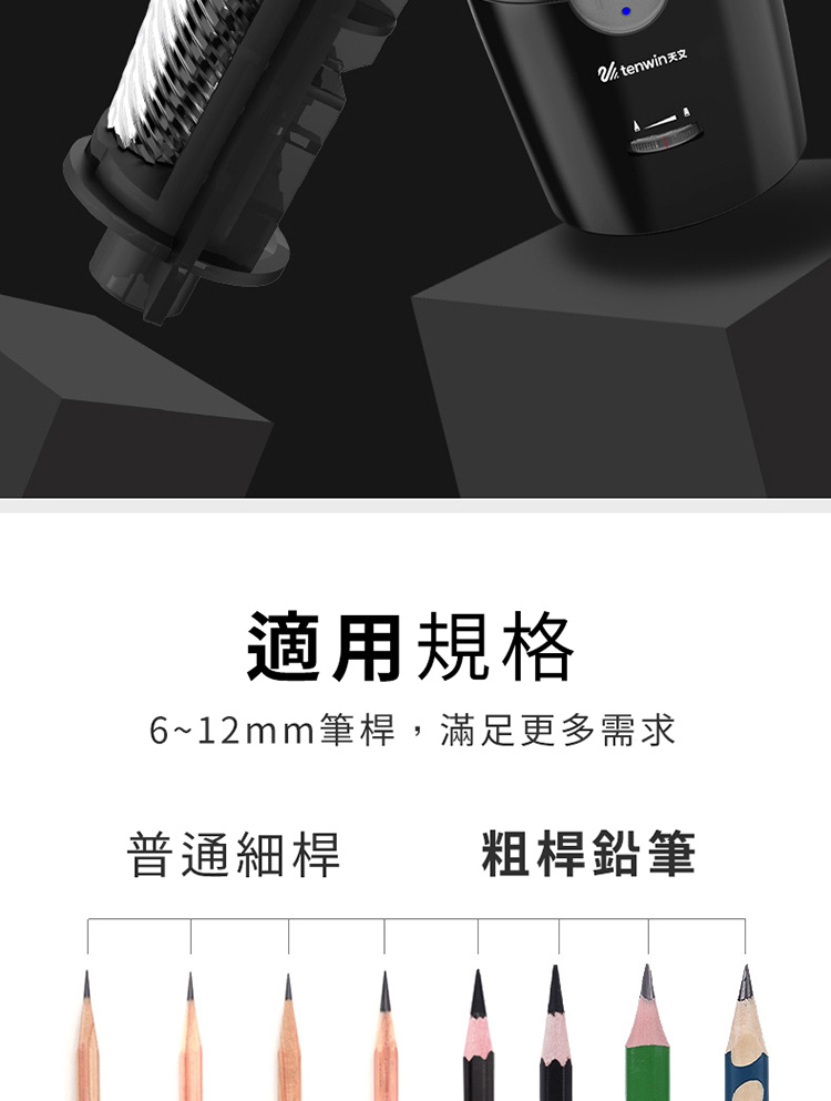 Tenwin 可調式充電式電動削鉛筆機 文具用品 粗細筆皆可用 三檔筆尖調整