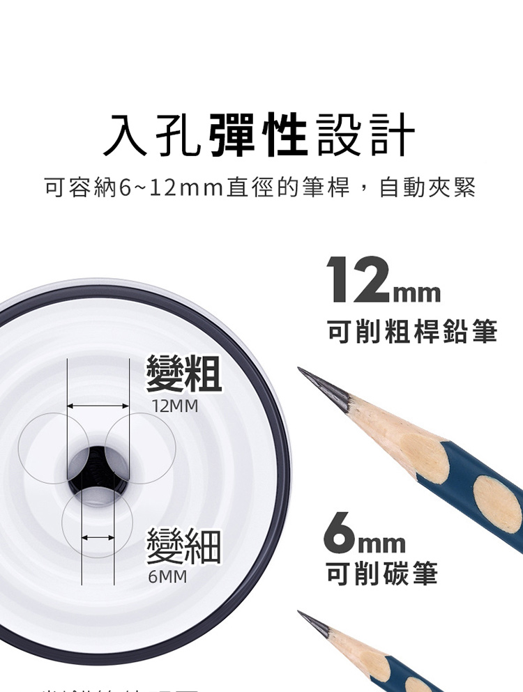 ●可削鉛筆直徑6~12mm,各種鉛筆、繪圖鉛筆、素描鉛筆都可用
